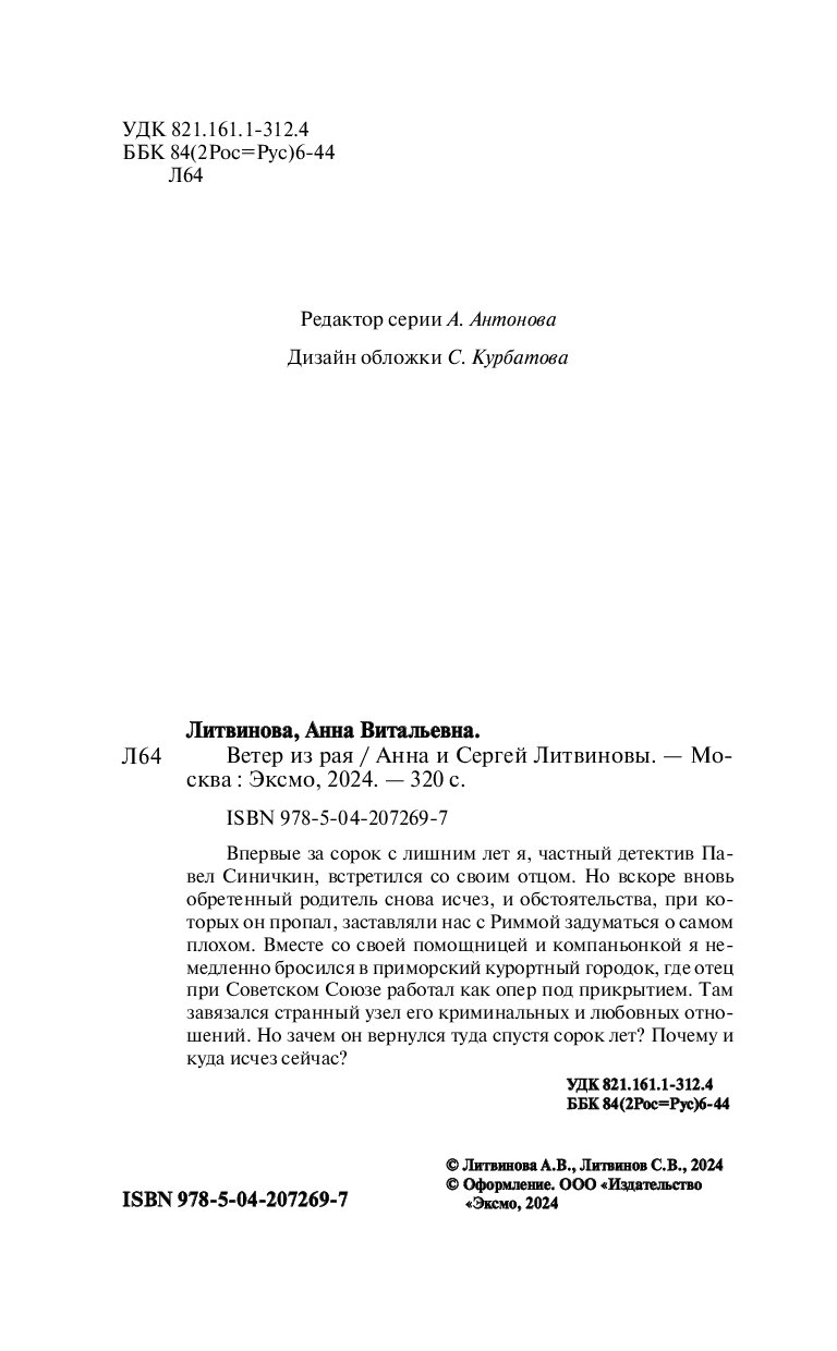 Новый роман Анны и Сергея Литвиновых, известных соавторов в мире российской остросюжетной литературы. Закрученная интрига, понятные и близкие читателю персонажи, современные проблемы — вот секрет успеха потрясающего детектива за авторством Литвиновых. Следствие вновь ведут хорошие известные читателям по романам и телесериалам герои — частный детектив Паша Синичкин и его верная помощница Римма.
