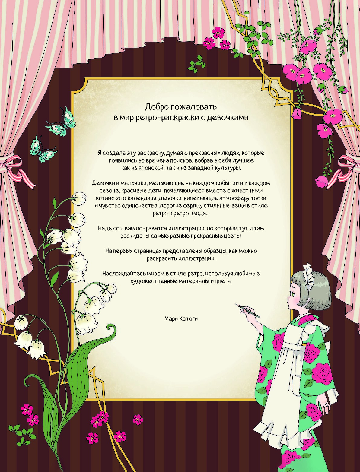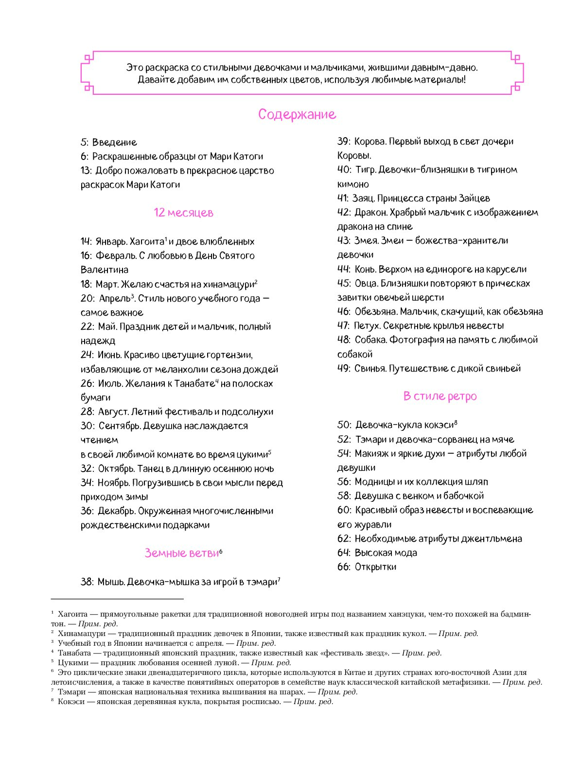 В этой уникальной раскраске вы встретите детей, вдохновленных животными китайского календаря, девочек, передающих чувство тоски и одиночества, а также модные ретро-аксессуары, наполненные нежностью и стилем.