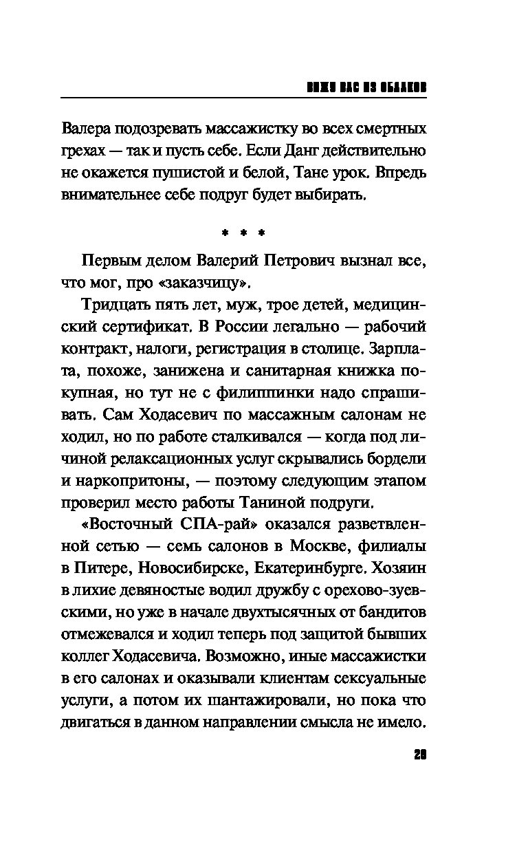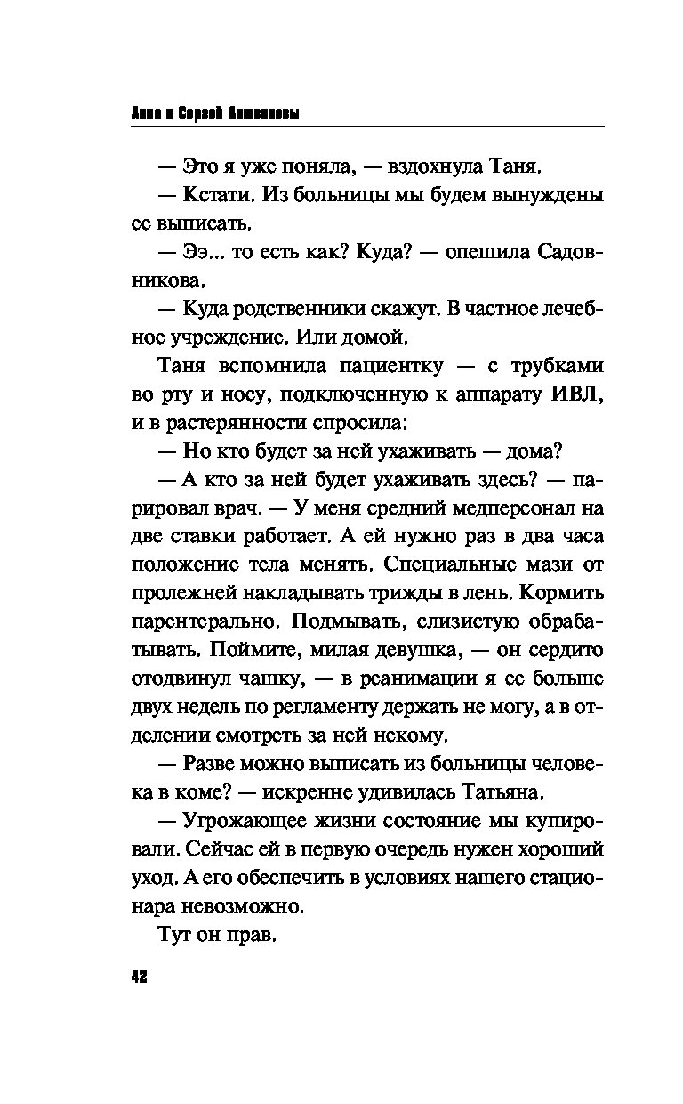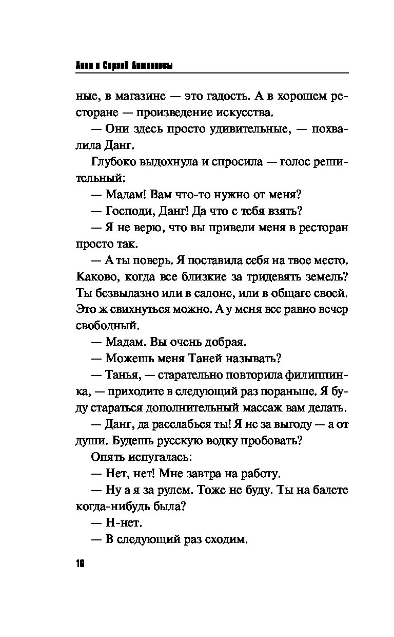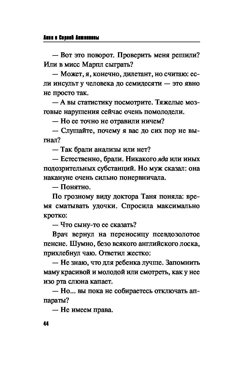 Закрученная интрига, понятные и близкие читателю персонажи, современные проблемы — вот секрет успеха хорошего детектива за авторством Литвиновых. Следствие вновь ведут хорошо известные читателям по романам и телесериалам герои — авантюристка Татьяна Садовникова и ее отчим, отставной полковник внешней разведки Валерий Ходасевич.
