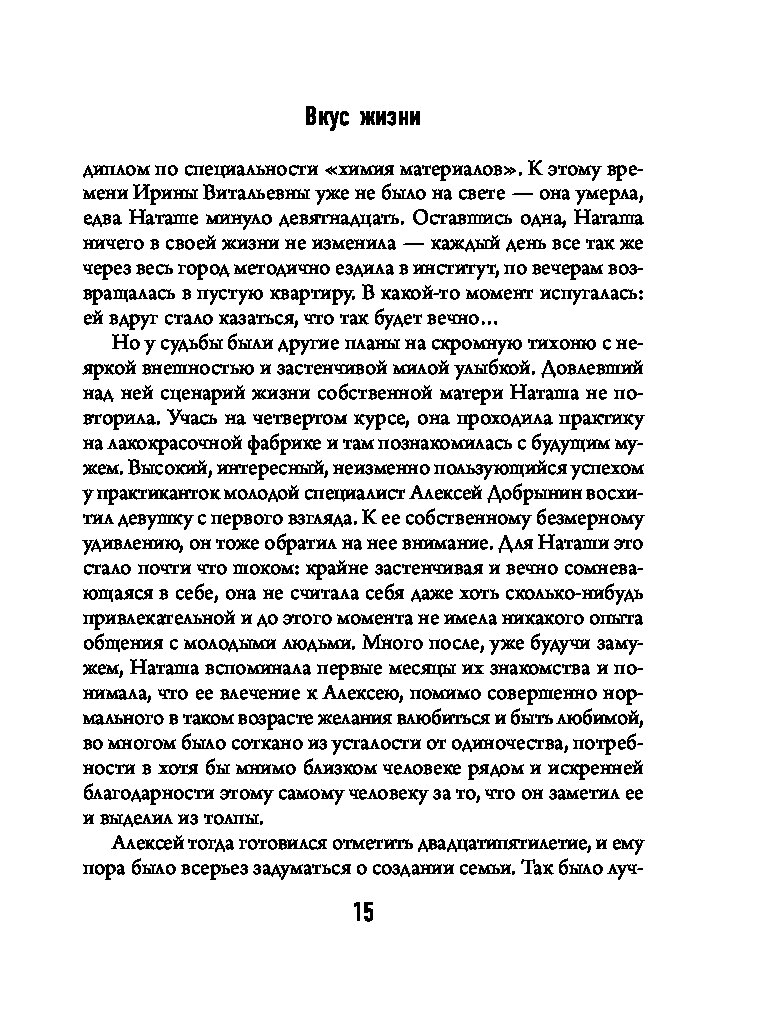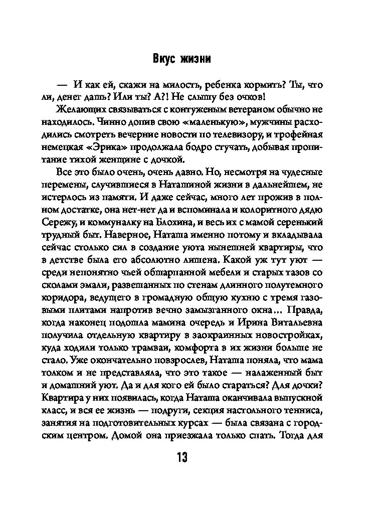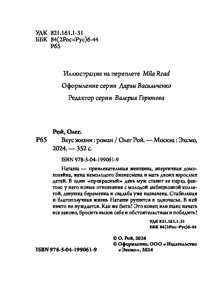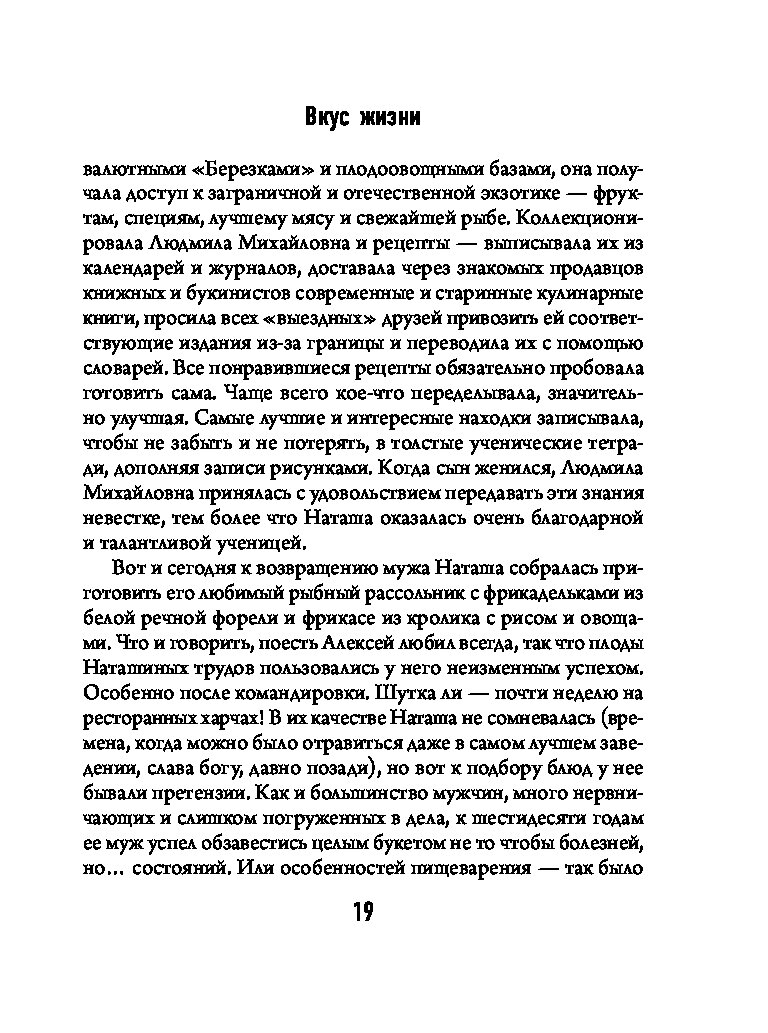 В романе Олега Роя «Вкус жизни» именно так и происходит: практически единственное, что осталось у Наташи, главной героини книги, после того как рухнул ее такой уютный и такой унылый мир, — страстная любовь к кулинарии. Как такое хобби может помочь изменить жизнь? Кардинально. При неиссякаемом упорстве, чуточке везения и хорошей поваренной книге. Главное — почувствовать вкус жизни, и все получится!