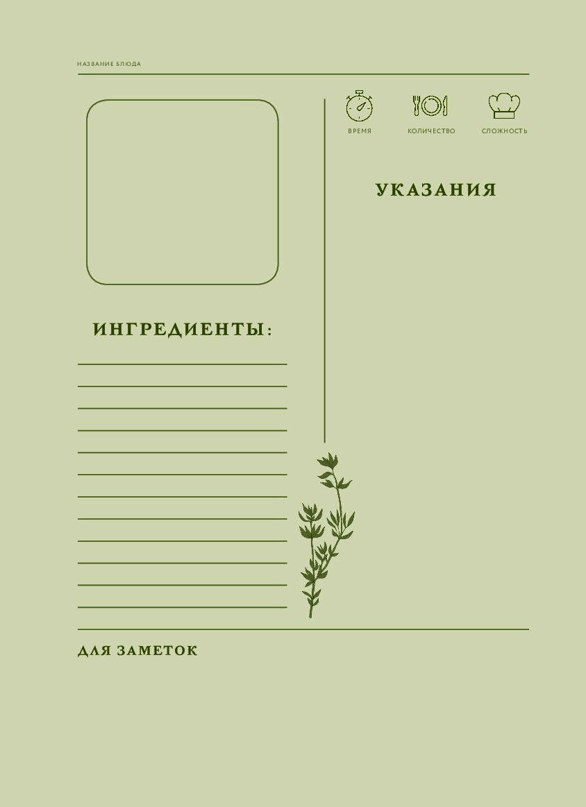 Внутри вы найдете тематические задания и вопросы для сближения, рецепты и советы по приготовлению, а также удобные поля для записи ваших собственных кулинарных шедевров.