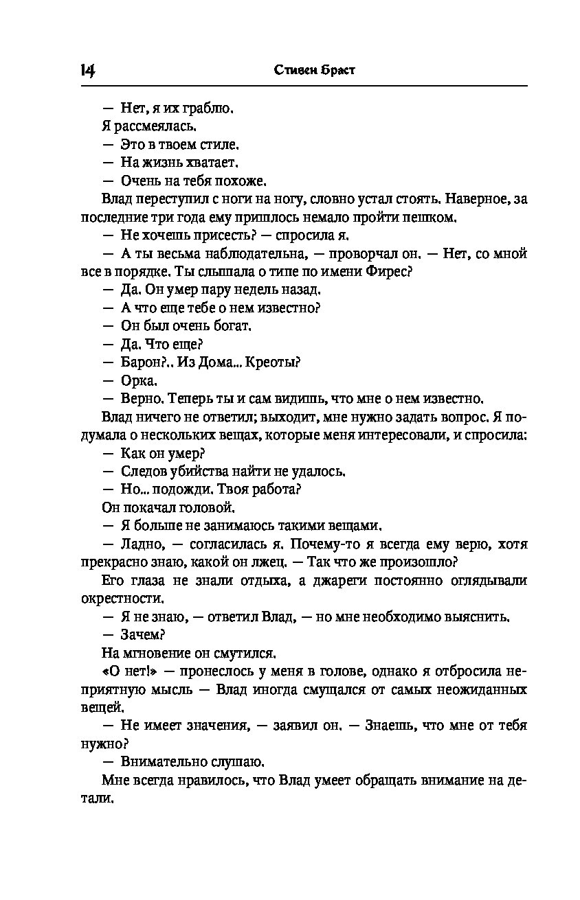 «Как всегда, Браст наделяет Влада шиком мушкетера как из-под пера Дюма и голосом героя из "Амбера" Желязны». — Publishers Weekly