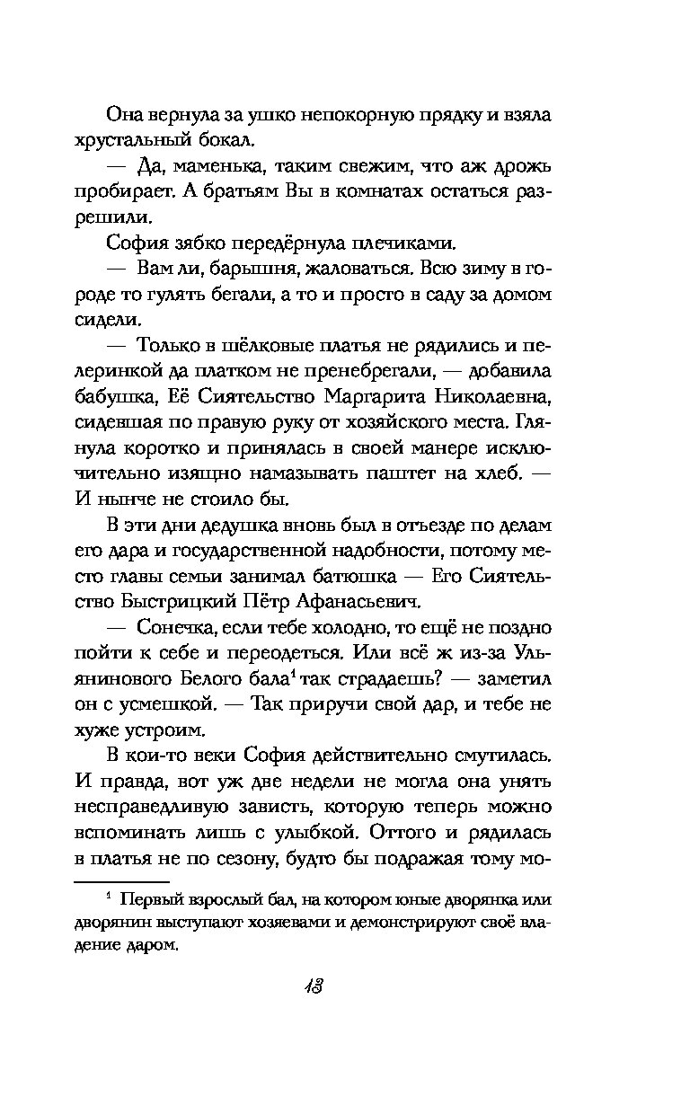 Роман взросления в антураже Российской империи XIX века с современными и вневозрастными проблемами становления личности.