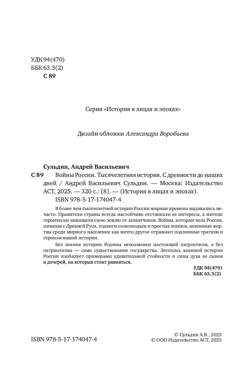 — «Войны России. Тысячелетняя история. С древности до наших дней» Сульдин А.В.