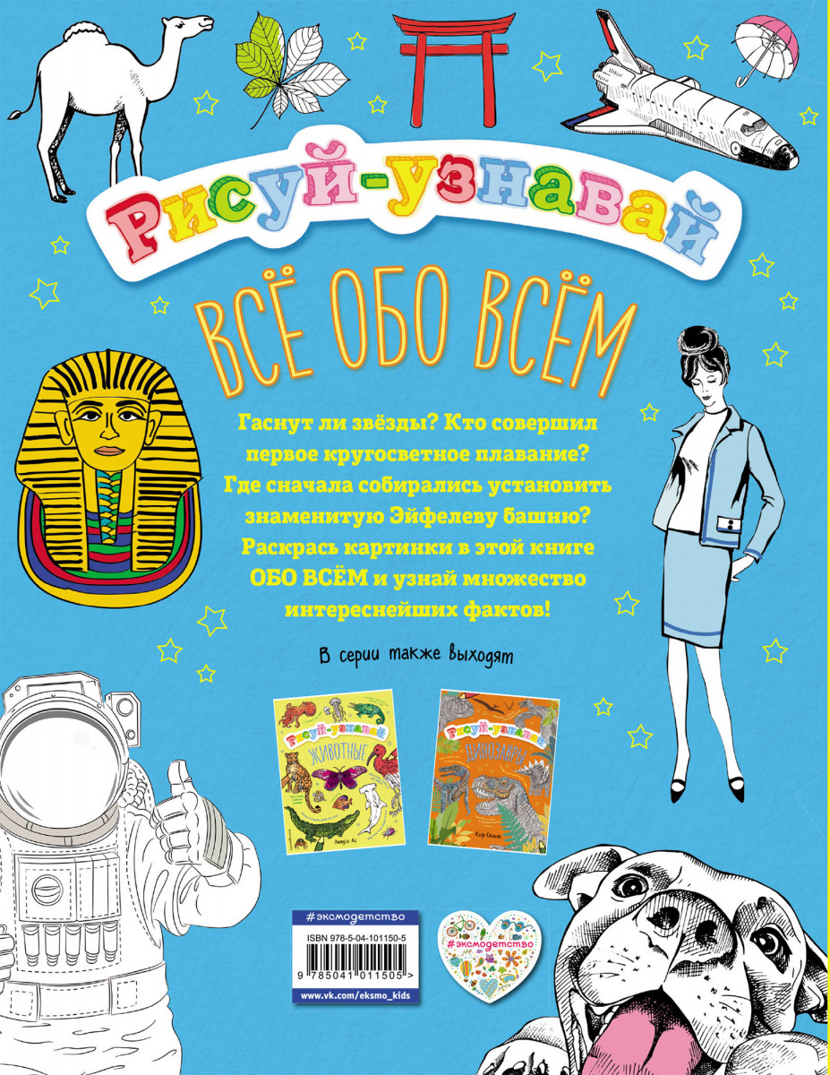 Книга «Все обо всем» - уникальный сборник интереснейших фактов с прекраснмих иллюстрациями и рисунками для раскрашивания. С ней ребенок проведёт свой досуг с пользой!