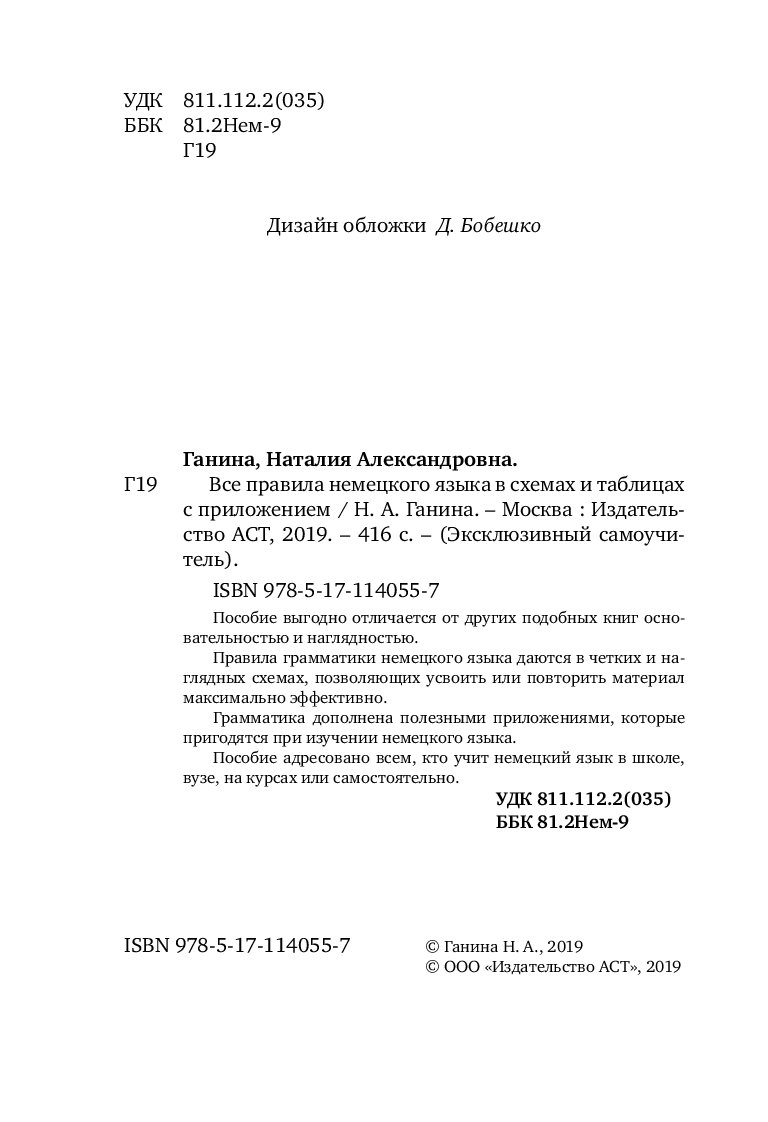 —Книга «Все правила немецкого языка в схемах и таблицах» Ганина Н.А.