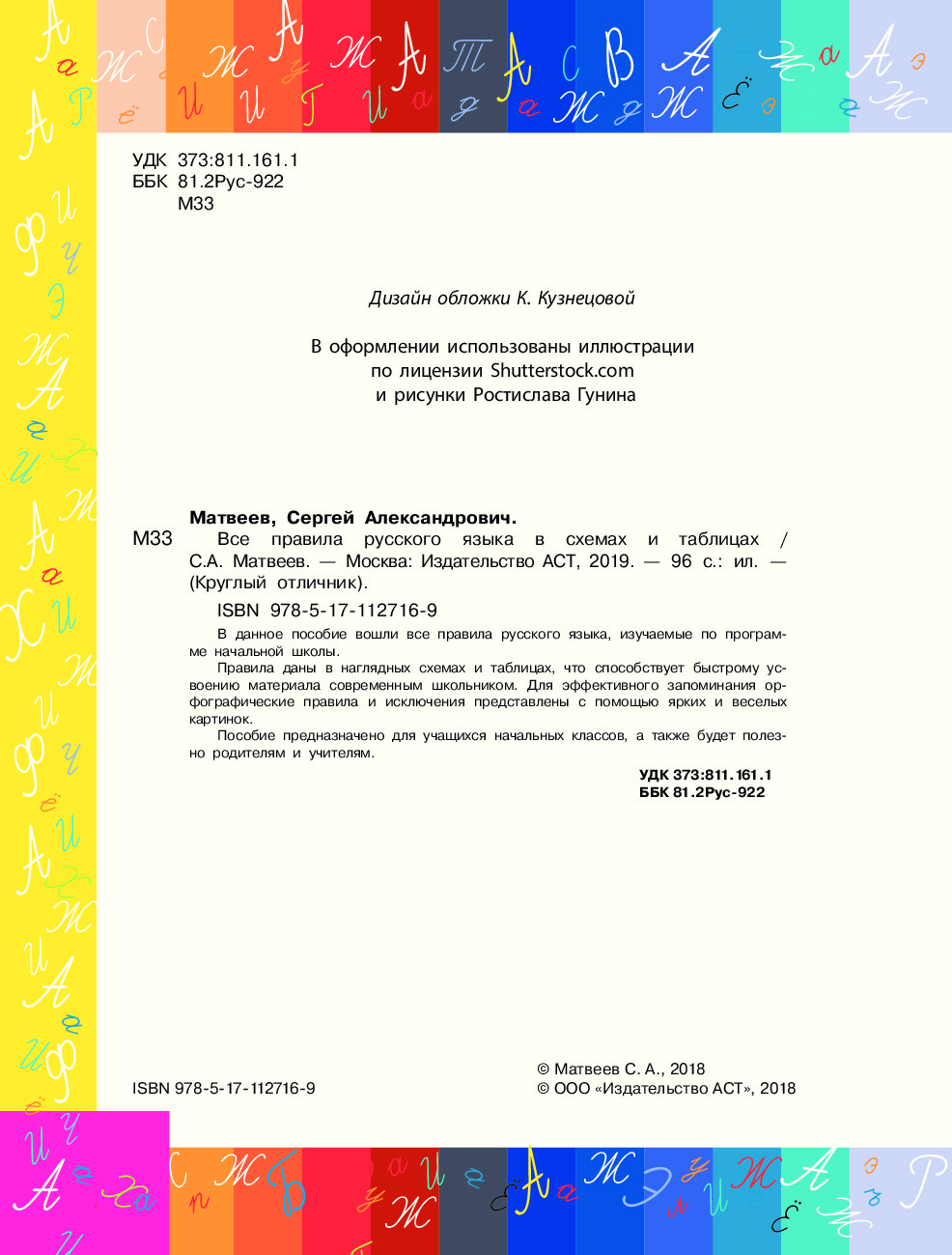 —Книга «Все правила русского языка в схемах и таблицах» Матвеев С.А.