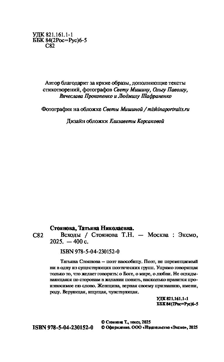 «Стихи Татьяны Стояновой достигают особой силы, когда она пишет о почти или совсем непереносимом страдании, о по-настоящему страшных вещах. Она нашла какой-то особый, уникально свой способ говорения о боли. Это нелёгкое чтение, но от него что-то важное прирастает в душе». — Дмитрий Данилов