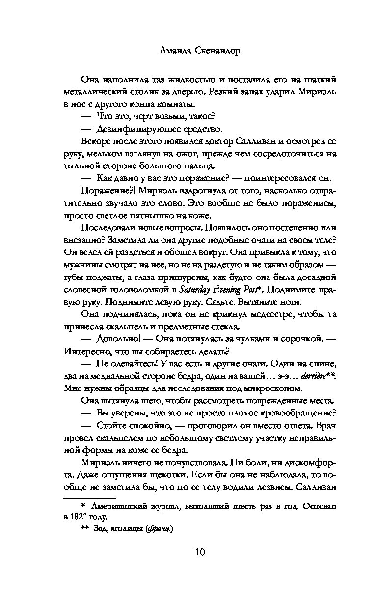 – «Во „Второй жизни Мирелль Вест“ Аманда Скенандор использовала не только свой талант рассказчика, но и обратилась к личному опыту из медицины. Ей удалось блестяще описать все те трудности, с которыми приходилось сталкиваться пациентам лепрозория Карвилль». — The Lancet