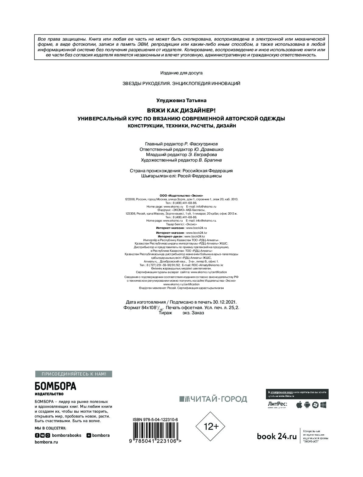 Если самостоятельный расчет с нуля сначала покажется вам сложным, то в книге вы найдете четыре пошаговых мастер-класса с уже готовым расчетом для размеров от XS до 4XL по вязанию свитера, джемпера, пуловера и футболки на основе описанных конструкций и техник.