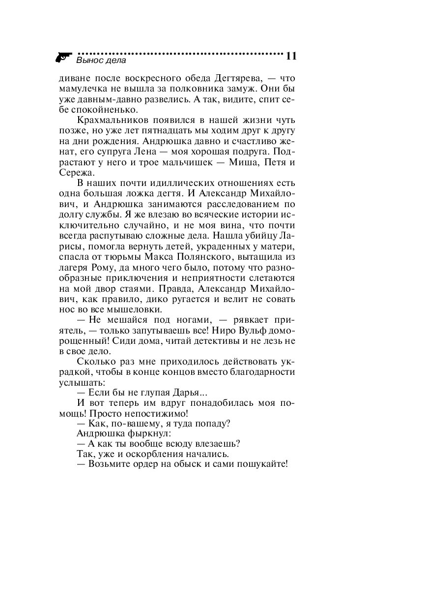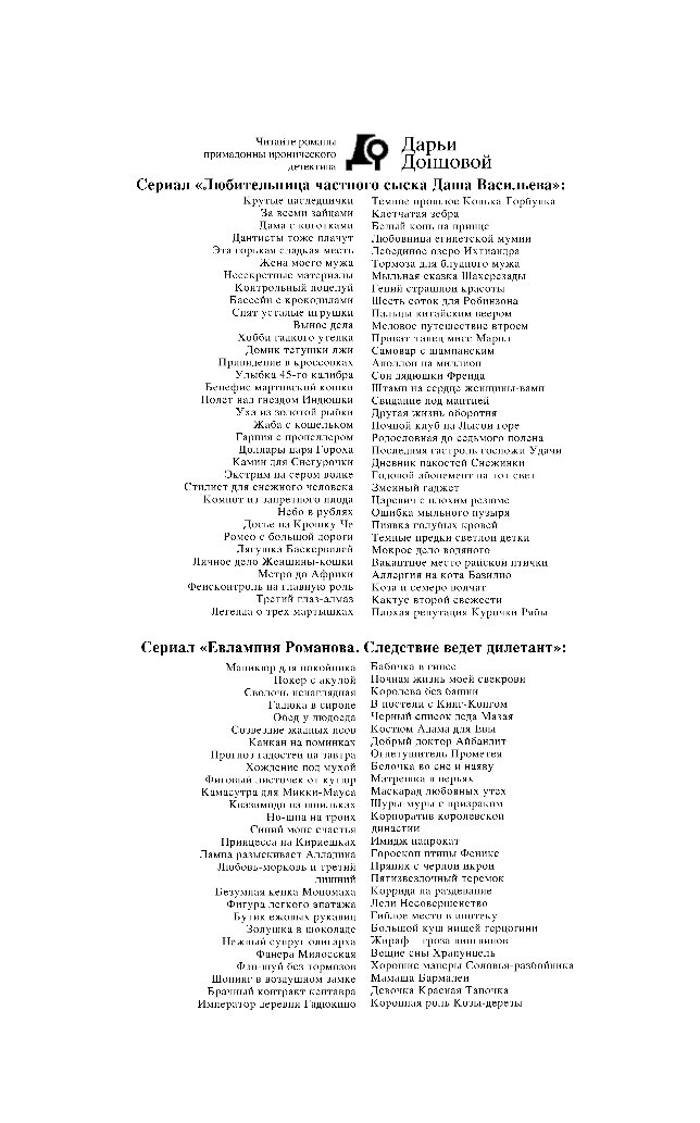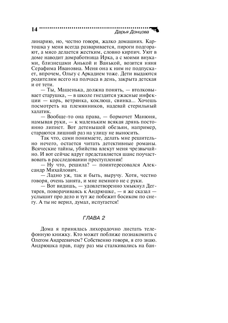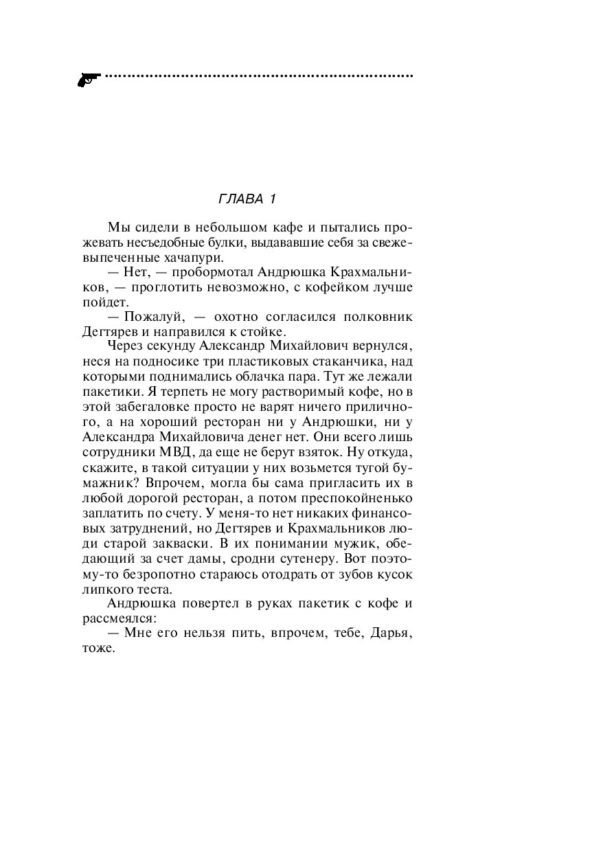 Один за другим погибают сокурсники Даши Васильевой… Вылетевший из-за угла «Фольксваген» подмял под колеса переходившую дорогу Зою Лазареву. Дважды проехав по безжизненному телу, машина умчалась прочь. Кто сидел за рулем этого автомобиля и не связан ли с этими убийствами таинственный Жок, на след которого по просьбе полковника МВД Дегтярева пытается выйти отчаянная любительница частного сыска Даша Васильева?..