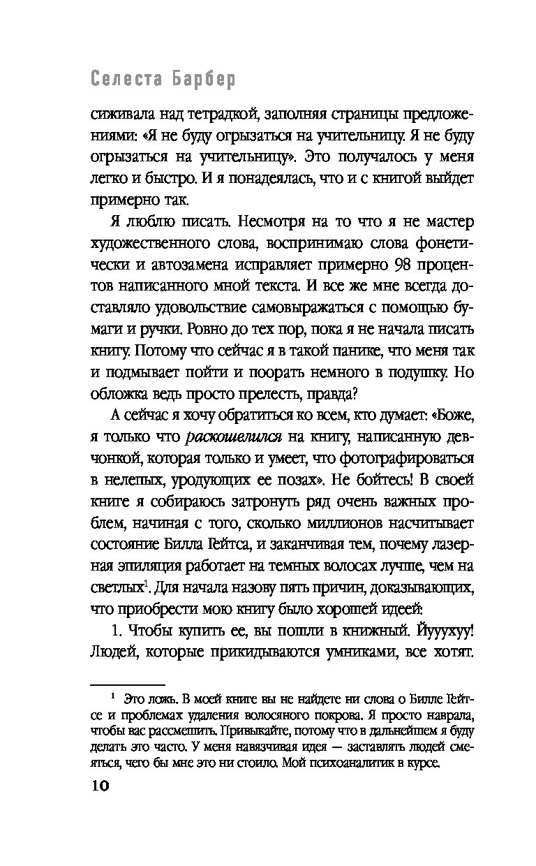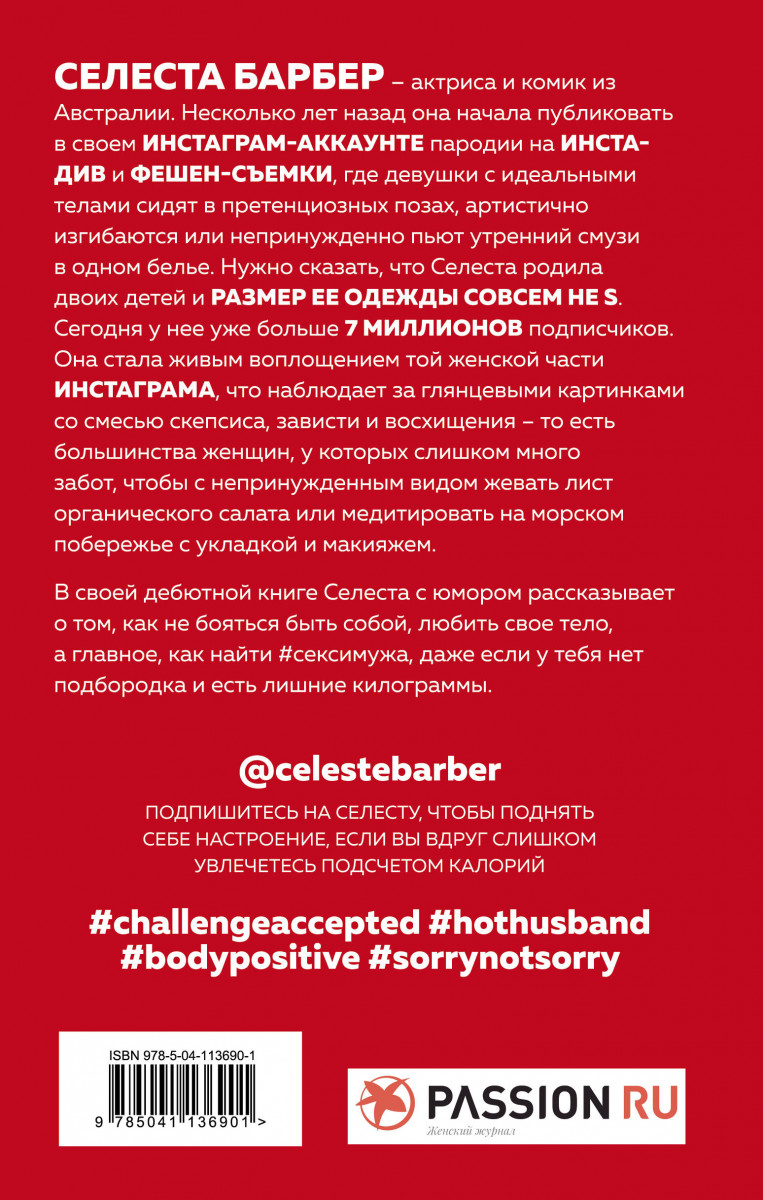 Селеста Барбер была малоизвестной австралийской актрисой до тех пор, пока не завела инстаграм-аккаунт, на который за 18 месяцев подписалось больше трех миллионов человек. Селеста стала живым воплощением среднестатистической женщины, которая ощущает угрызения совести и грусть, насмотревшись на отретушированные постановочные фото моделей с идеальными телами. Ее уморительные пародии, на которых она с одинаковой грацией изображает модные фотосъемки и хвастливые видео инстадив, принесли ей популярность во всем мире. Став внезапным амбассадором бодипозитива, она поучаствовала в проектах австралийского Vogue и снялась в вирусном ролике с Томом Фордом. На нее подписываются голливудские актрисы, модельеры и политики. Ее дебютная книга о том, как быть собой и любить свое тело независимо от количества килограммов, уже переведена на несколько языков.