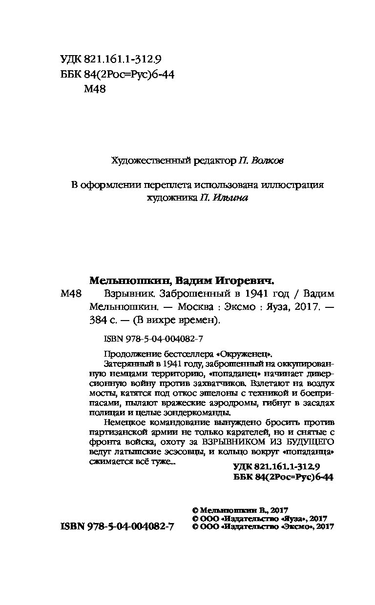 Книга «Взрывник. Заброшенный в 1941 год» Мельнюшкин В.И.