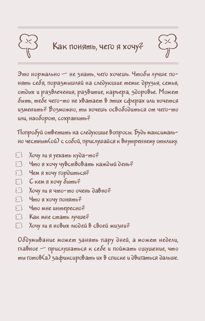 • Инструкция и вспомогательная страница с вопросами поможет лучше понять, чего ты действительно хочешь.