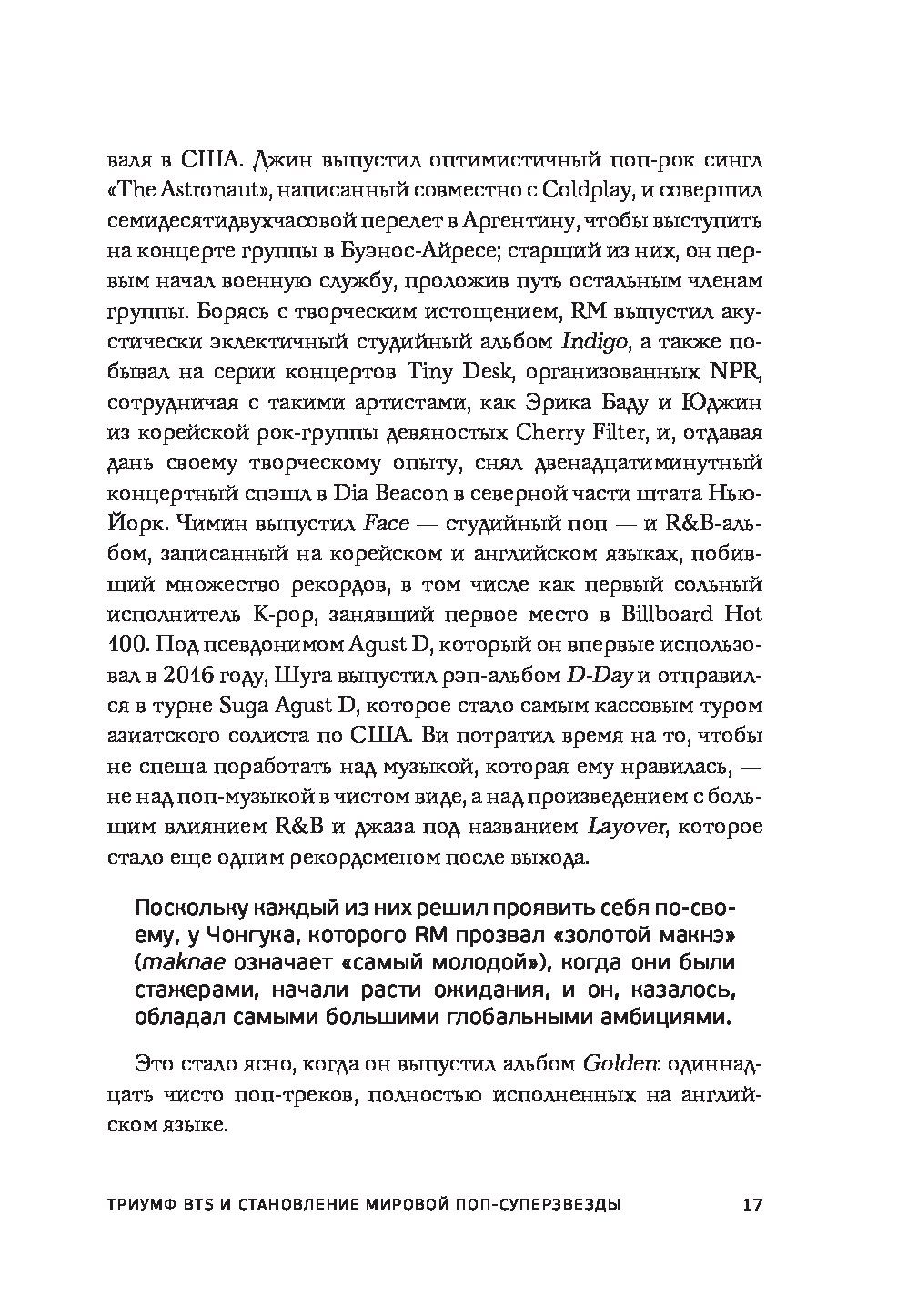 Его история — вдохновение для всех, кто мечтает о достижении своих целей. В книге вы найдете ценные уроки о преодолении трудностей, вере в себя и решительности. Чонгук — пример того, что даже самые смелые мечты могут стать реальностью при настойчивости и страсти.