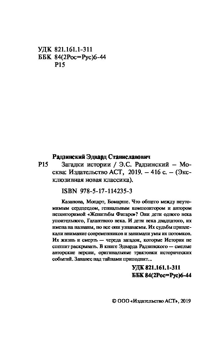 В интернет-магазине Book24.kz можно заказать и купить книгу Загадки истории недорого с адресной доставкой по Казахстану. Воспользовавшись нашим сервисом, Вам не придется долго ждать заказ. В течение 1-9 дней товар доставляется в любой город – Актау, Актобе, Атырау, Караганду, Кокшетау, Костанай, Кызылорду, Павлодар, Петропавловск, Талдыкорган, Тараз, Уральск, Усть-Каменогорск, Шымкент, Алматы, Астану и другие. У нас на сайте можно просмотреть фото, ознакомиться с кратким содержанием книги и отзывами читателей. Предлагаем выгодные условия продажи: доступные цены, оперативную доставку. Все книги в наличии.