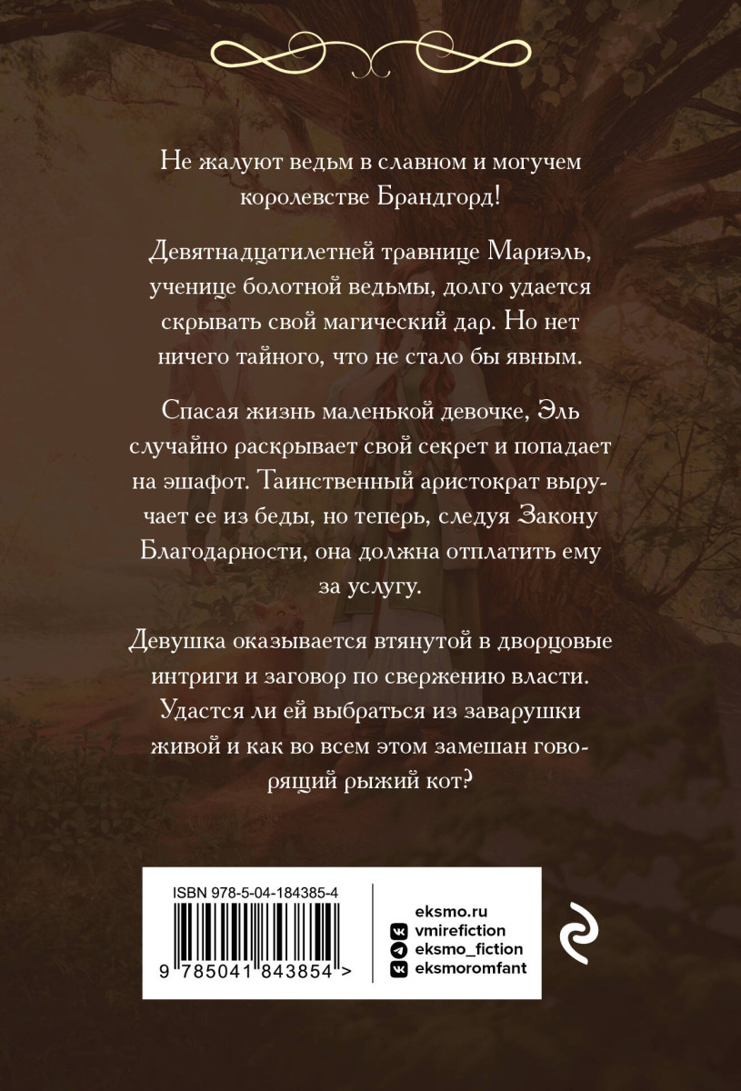 Девятнадцатилетней травнице Мариэль, ученице болотной ведьмы, долго удаётся скрывать свой магический дар. Но нет ничего тайного, что не стало бы явным. Спасая жизнь маленькой девочке, Эль случайно раскрывает свой секрет и попадает на эшафот. Таинственный аристократ выручает её из беды, но теперь, следуя Закону Благодарности, она должна отплатить ему за услугу. Девушка оказывается втянутой в дворцовые интриги и заговор по свержению власти. Удастся ли ей выбраться из заварушки живой и как во всём этом замешан говорящий рыжий кот?