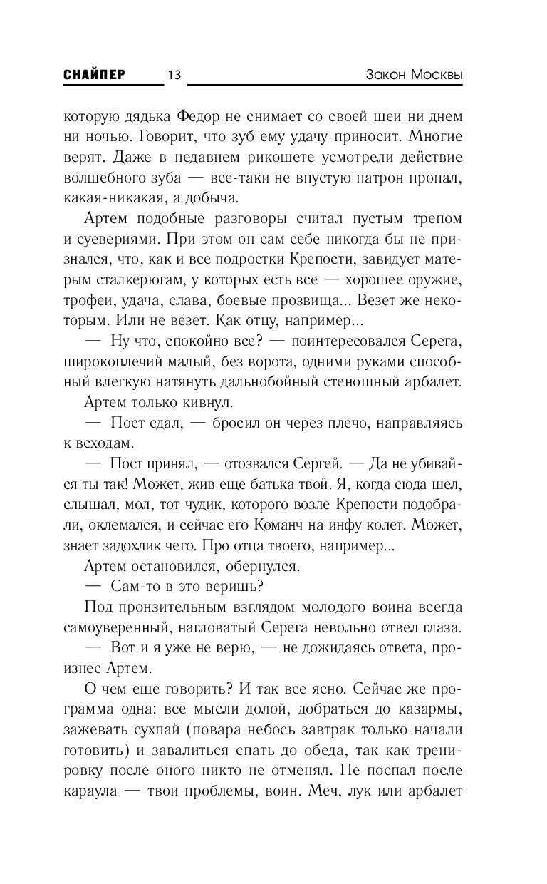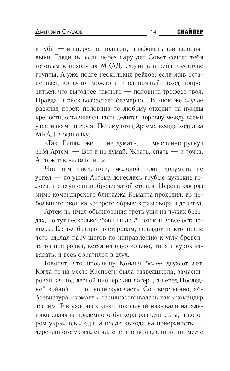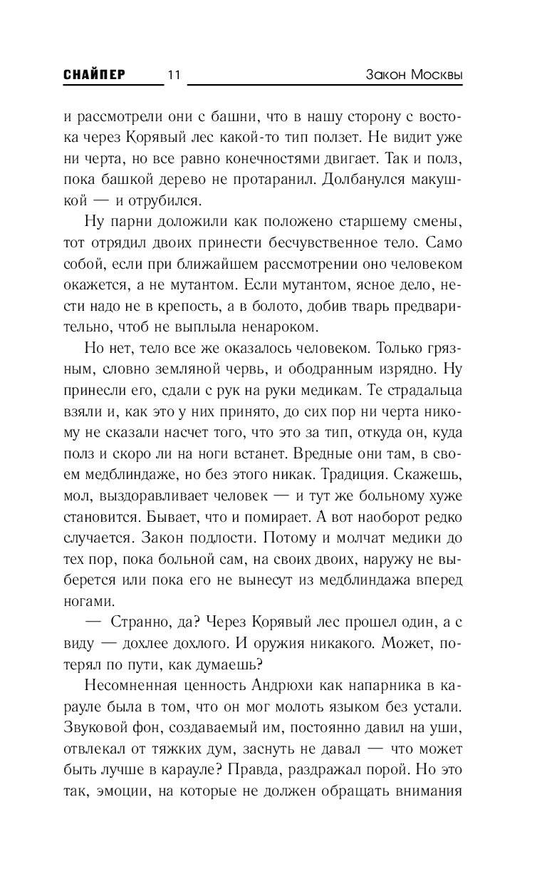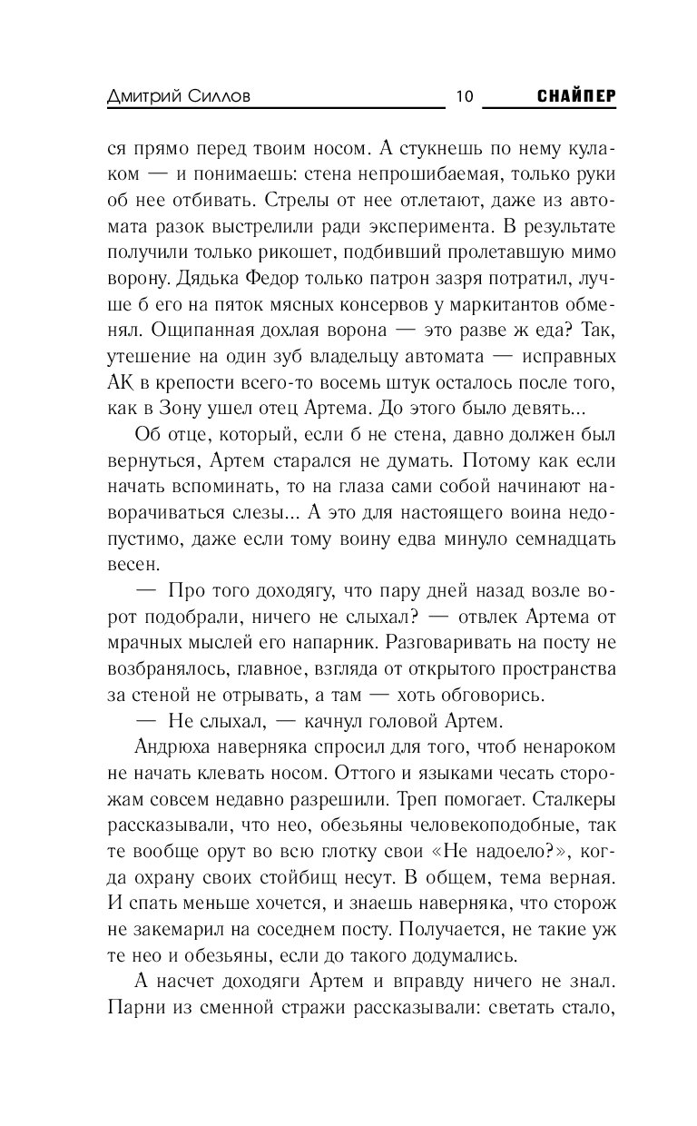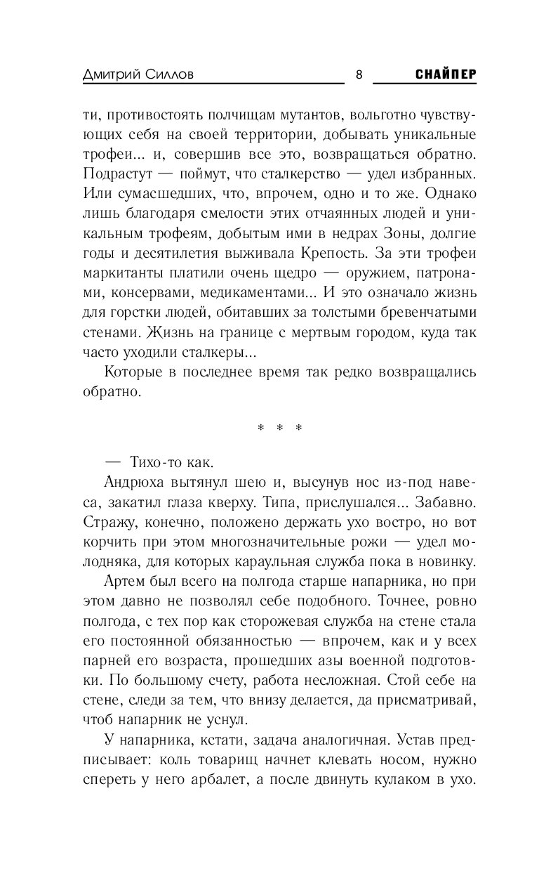 Снайпер появлялся на страницах романов из циклов «Сталкер», «Кремль 2222» и «Роза миров» — и теперь цикл «Кремль 2222» обретает новую жизнь на страницах авторской серии Дмитрия Силлова «Снайпер».