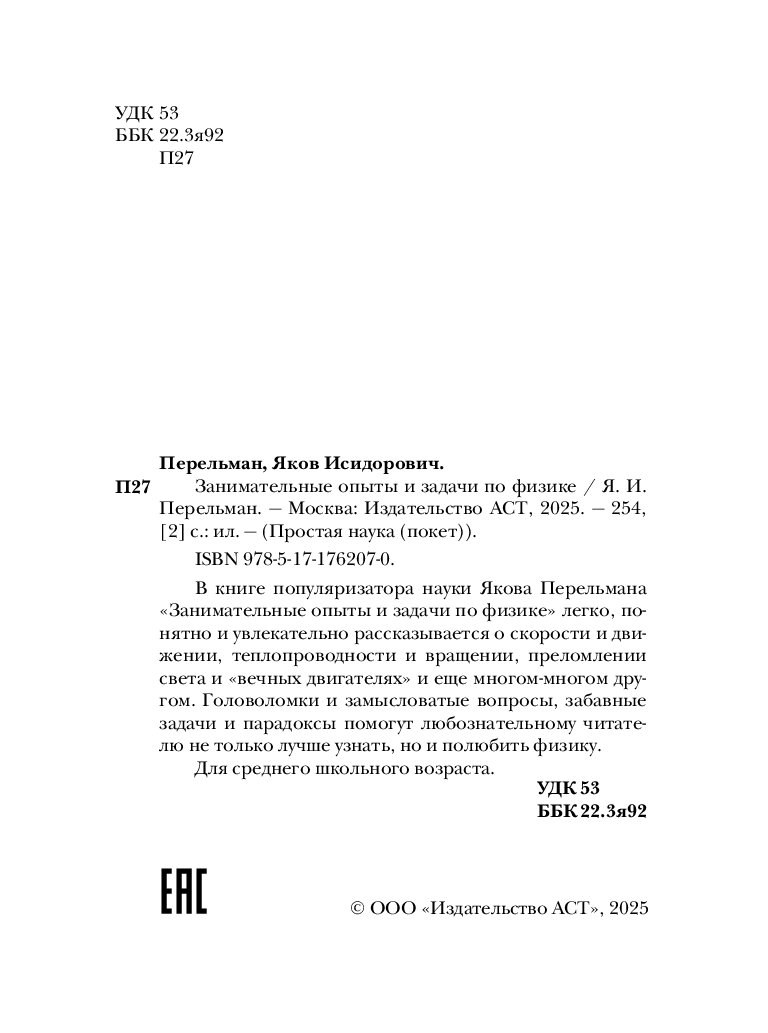 — «Занимательные опыты и задачи по физике» Перельман Я.И.