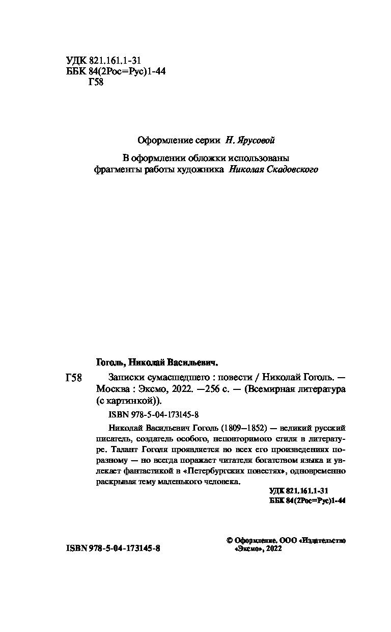 — «Записки сумасшедшего. Повести» Гоголь Н.В.