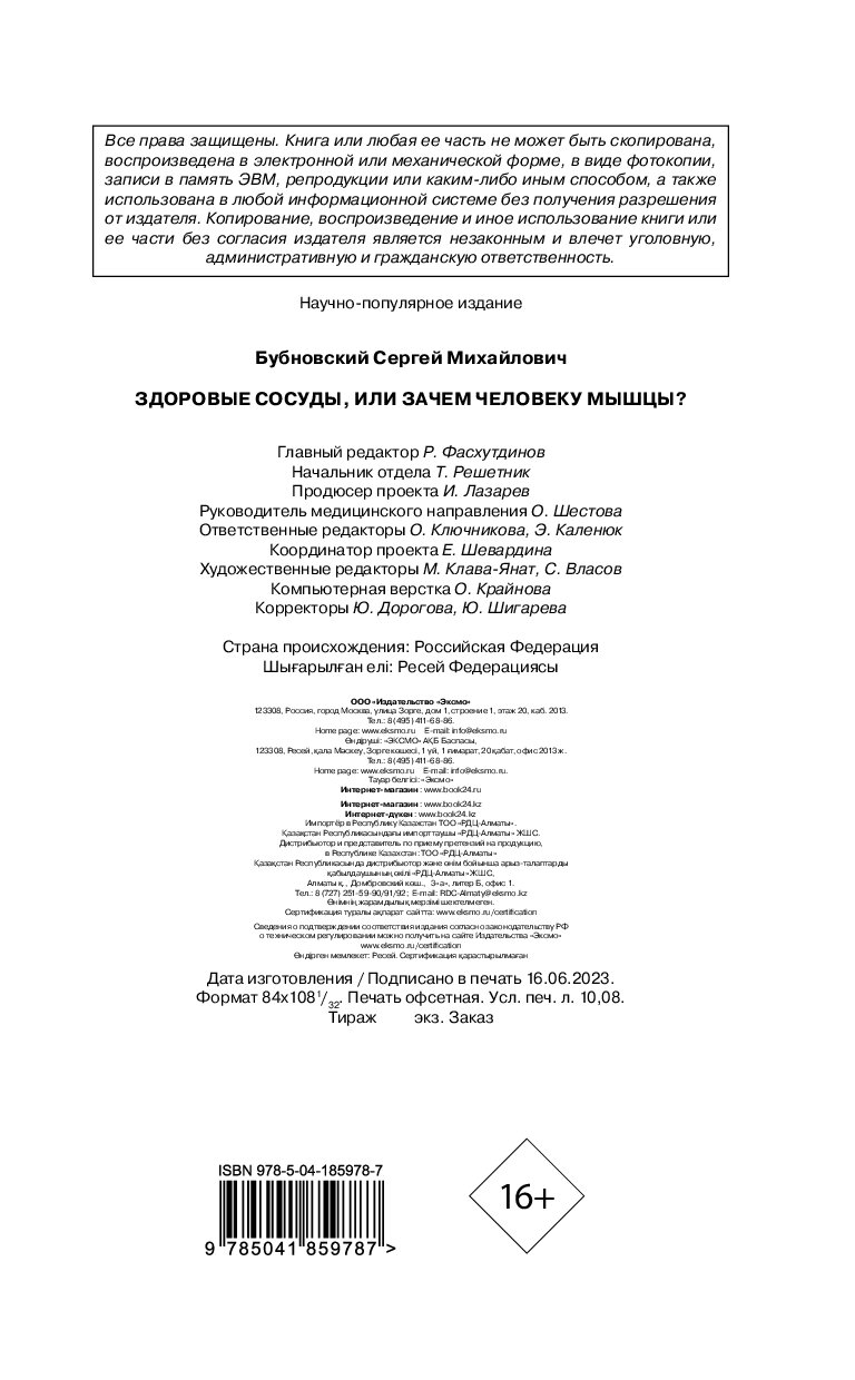 В интернет-магазине Book24.kz можно заказать и купить книгу Здоровые сосуды, или Зачем человеку мышцы? 3-е издание недорого с адресной доставкой по Казахстану. Воспользовавшись нашим сервисом, Вам не придется долго ждать заказ. В течение 1-9 дней товар доставляется в любой город – Актау, Актобе, Атырау, Караганду, Кокшетау, Костанай, Кызылорду, Павлодар, Петропавловск, Талдыкорган, Тараз, Уральск, Усть-Каменогорск, Шымкент, Алматы, Астану и другие. У нас на сайте можно просмотреть фото, ознакомиться с кратким содержанием книги и отзывами читателей. Предлагаем выгодные условия продажи: доступные цены, оперативную доставку. Все книги в наличии.