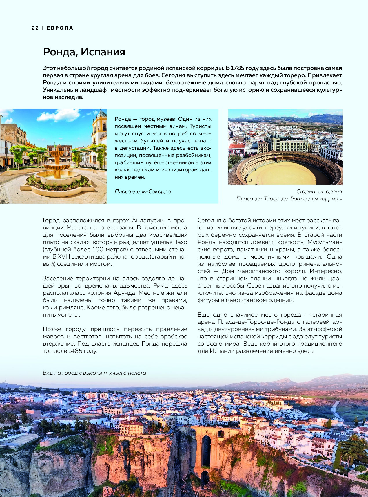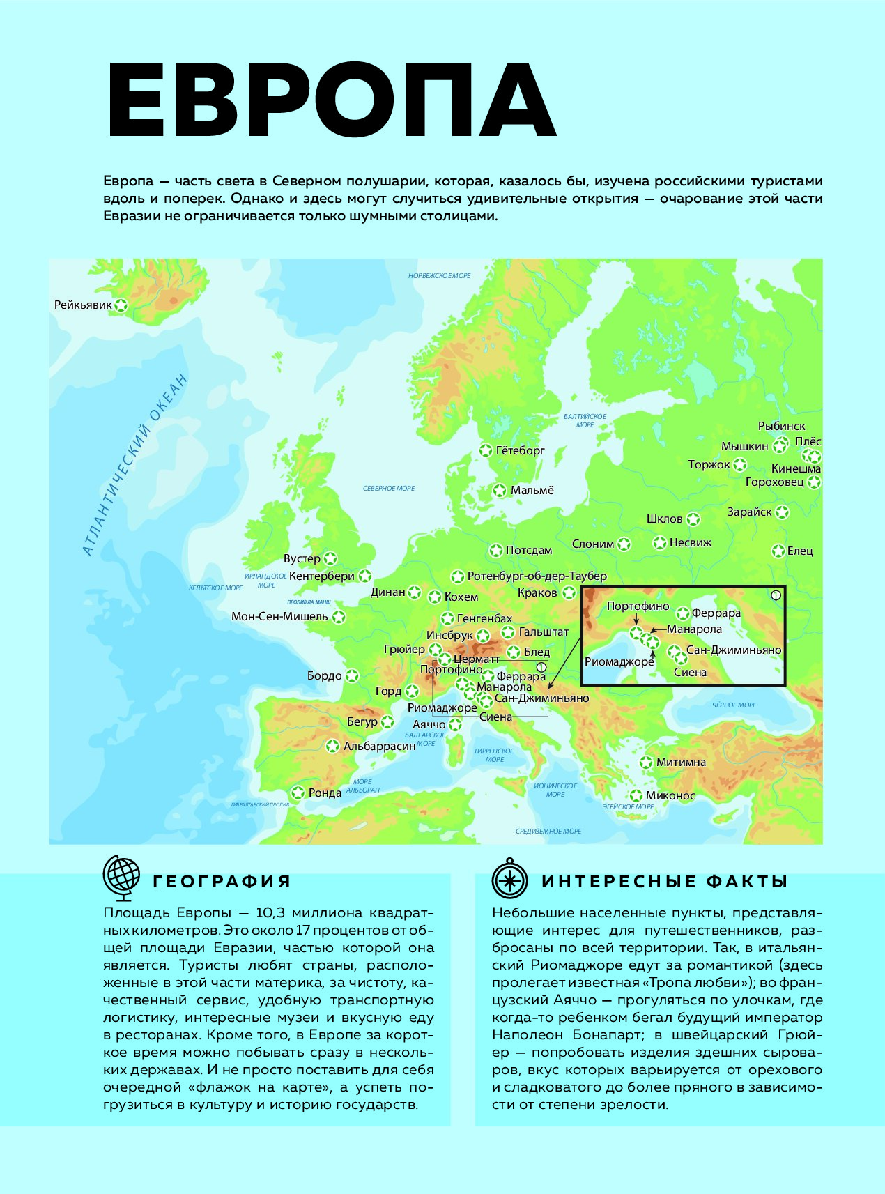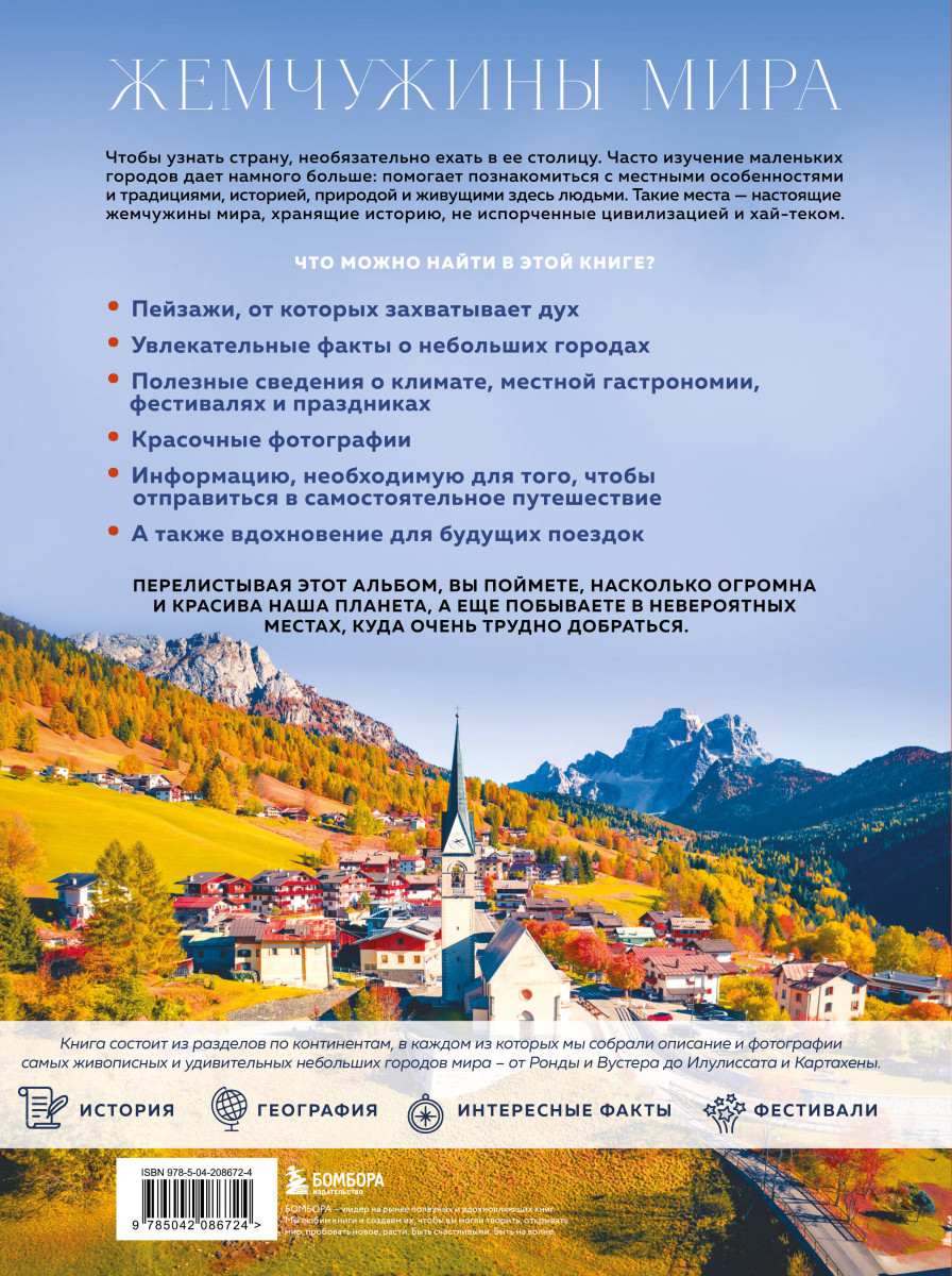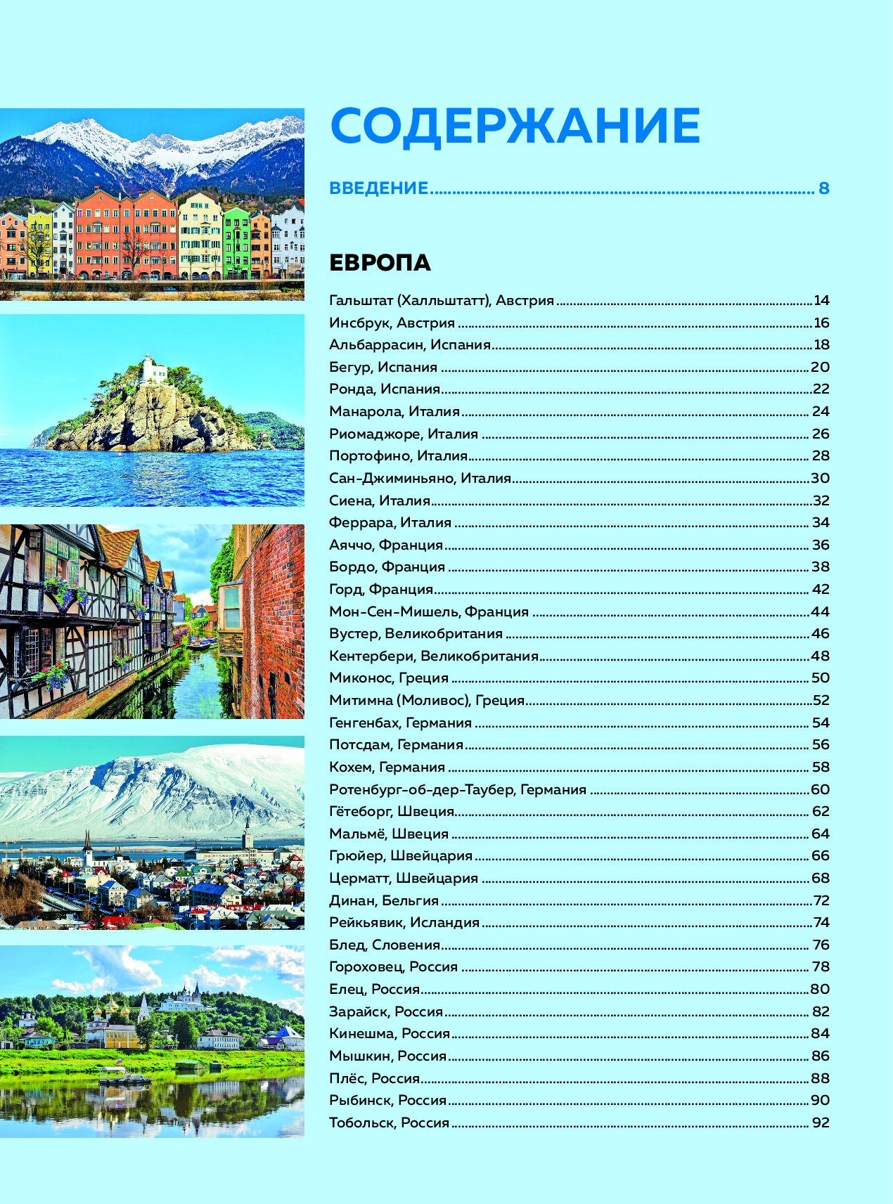 Открыв эту книгу, вы прогуляетесь по висящему над ущельем мосту в Ронде, растворитесь в медовом свете заката Сиены, найдете тихие дворики Кракова, искупаетесь в горячих источниках Баньоса, откроете белоснежный покой гор Инсбрука и Церматта, а также увидите китов в Ситке и знаковые места империи инков в Куско.