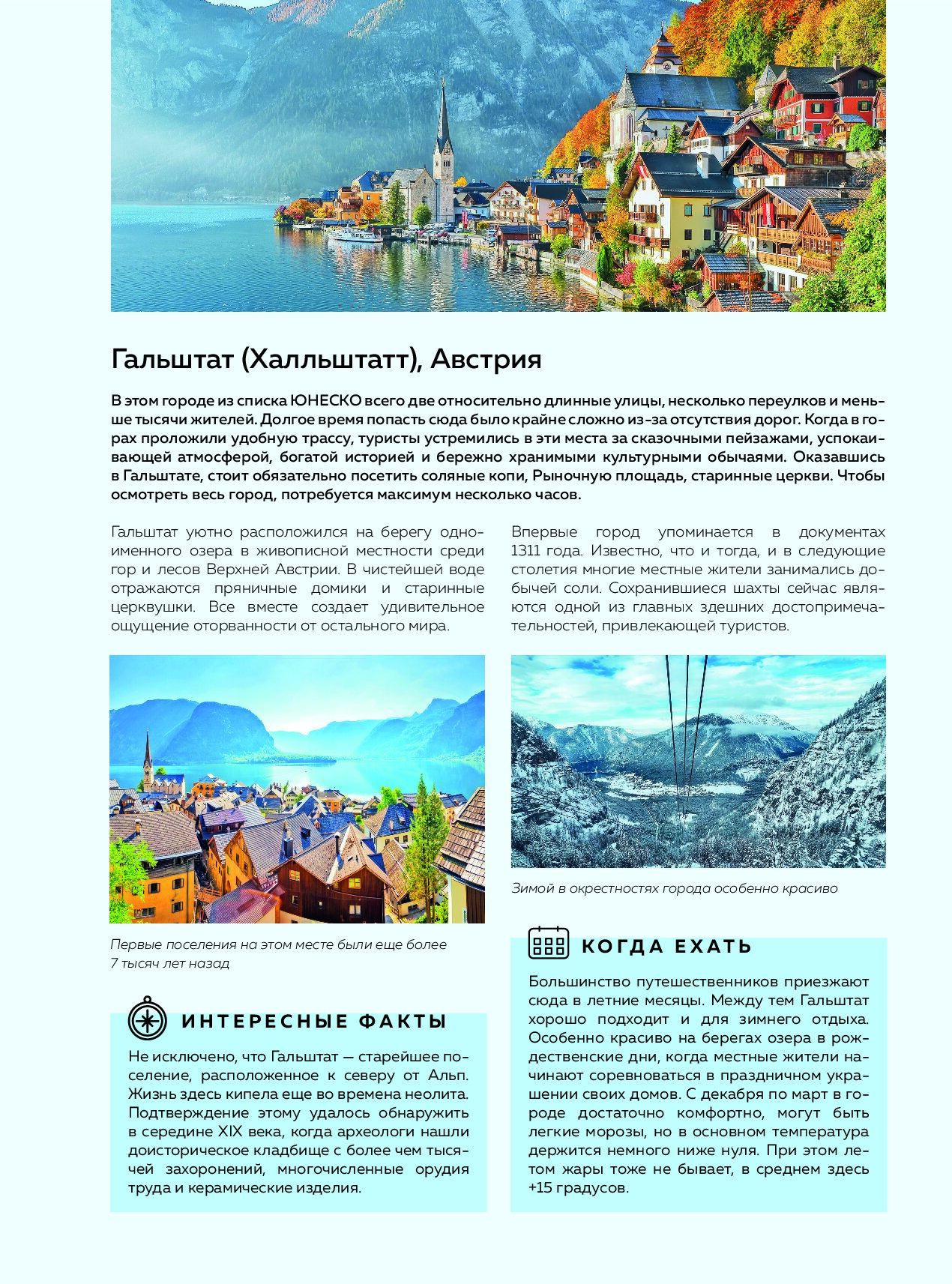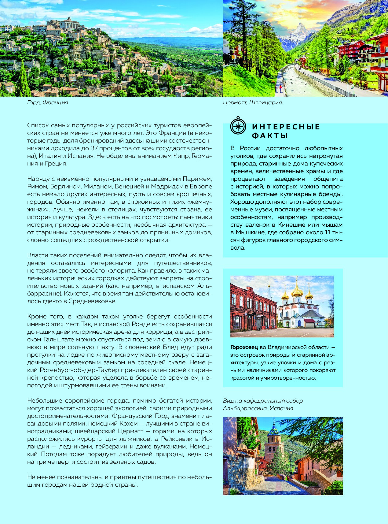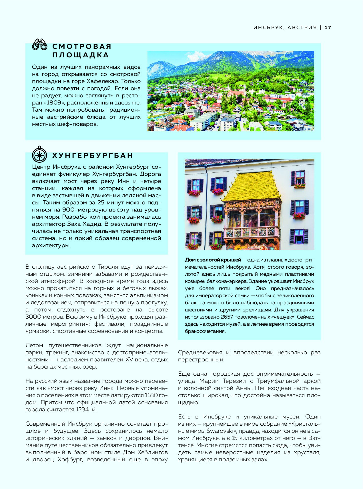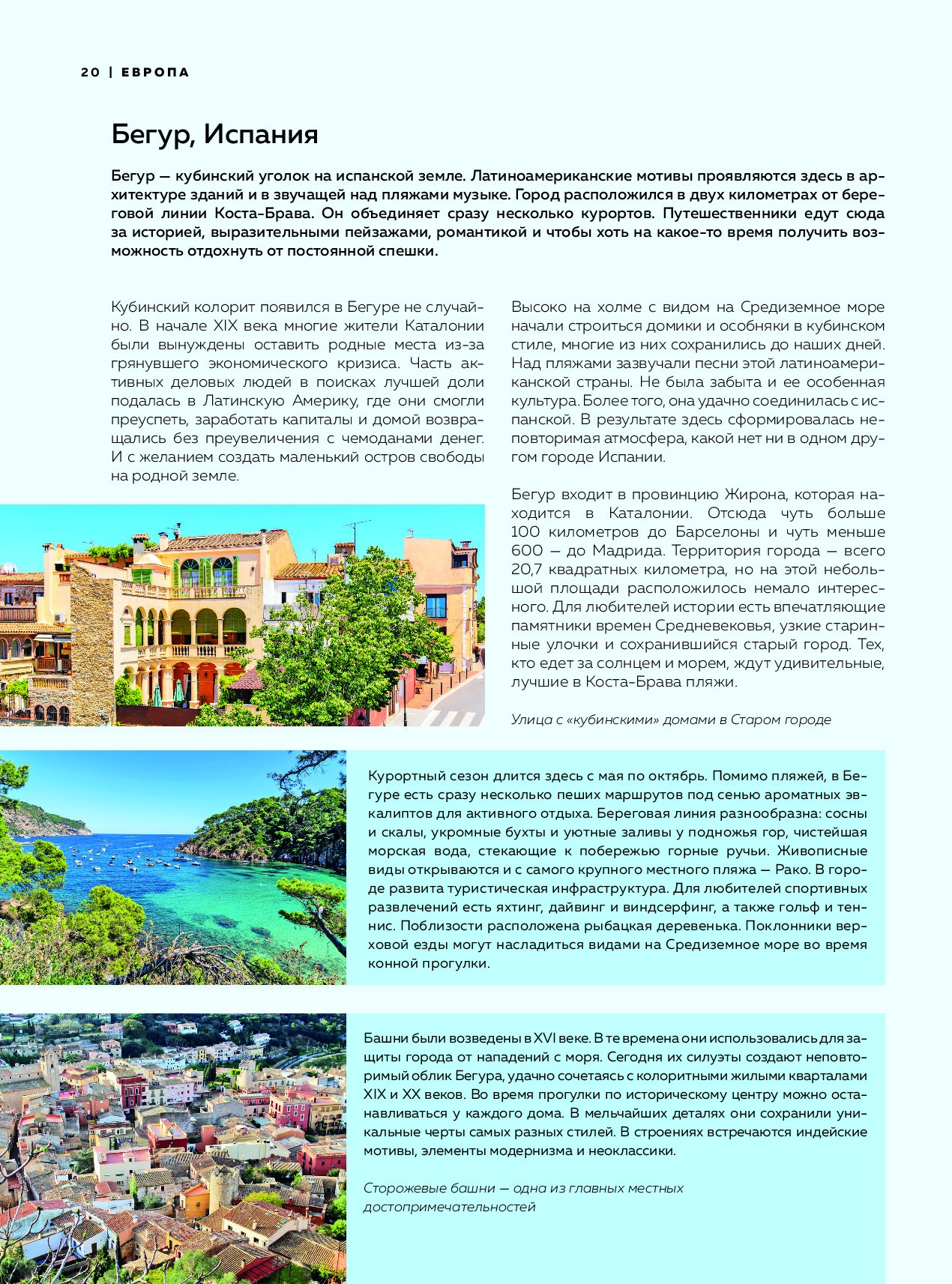 Открыв эту книгу, вы прогуляетесь по висящему над ущельем мосту в Ронде, растворитесь в медовом свете заката Сиены, найдете тихие дворики Кракова, искупаетесь в горячих источниках Баньоса, откроете белоснежный покой гор Инсбрука и Церматта, а также увидите китов в Ситке и знаковые места империи инков в Куско.
