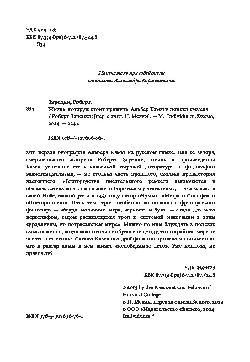 — «Жизнь, которую стоит прожить. Альбер Камю и поиски смысла» Роберт Зарецки