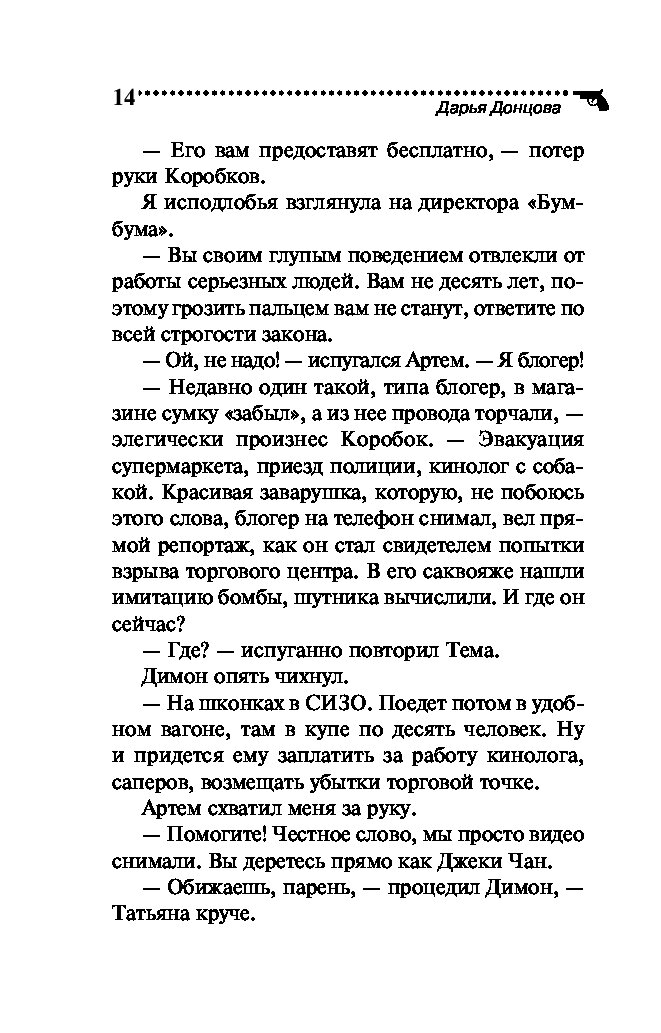 Но это уже было лишним. Выяснилось, что «нападение» - всего лишь постановочная съемка для соцсетей блогерши Меньшиковой. Тут бы Тане выдохнуть и расслабиться, однако история на этом не закончилась. В офис детективов заявилась настоящая шантажистка, и сотрудникам Татьяны пришлось вспомнить старое дело об убийстве их коллеги Петра Заикина. Вдова несчастного совершила очень странный поступок: сдала в интернат единственную дочь и исчезла…