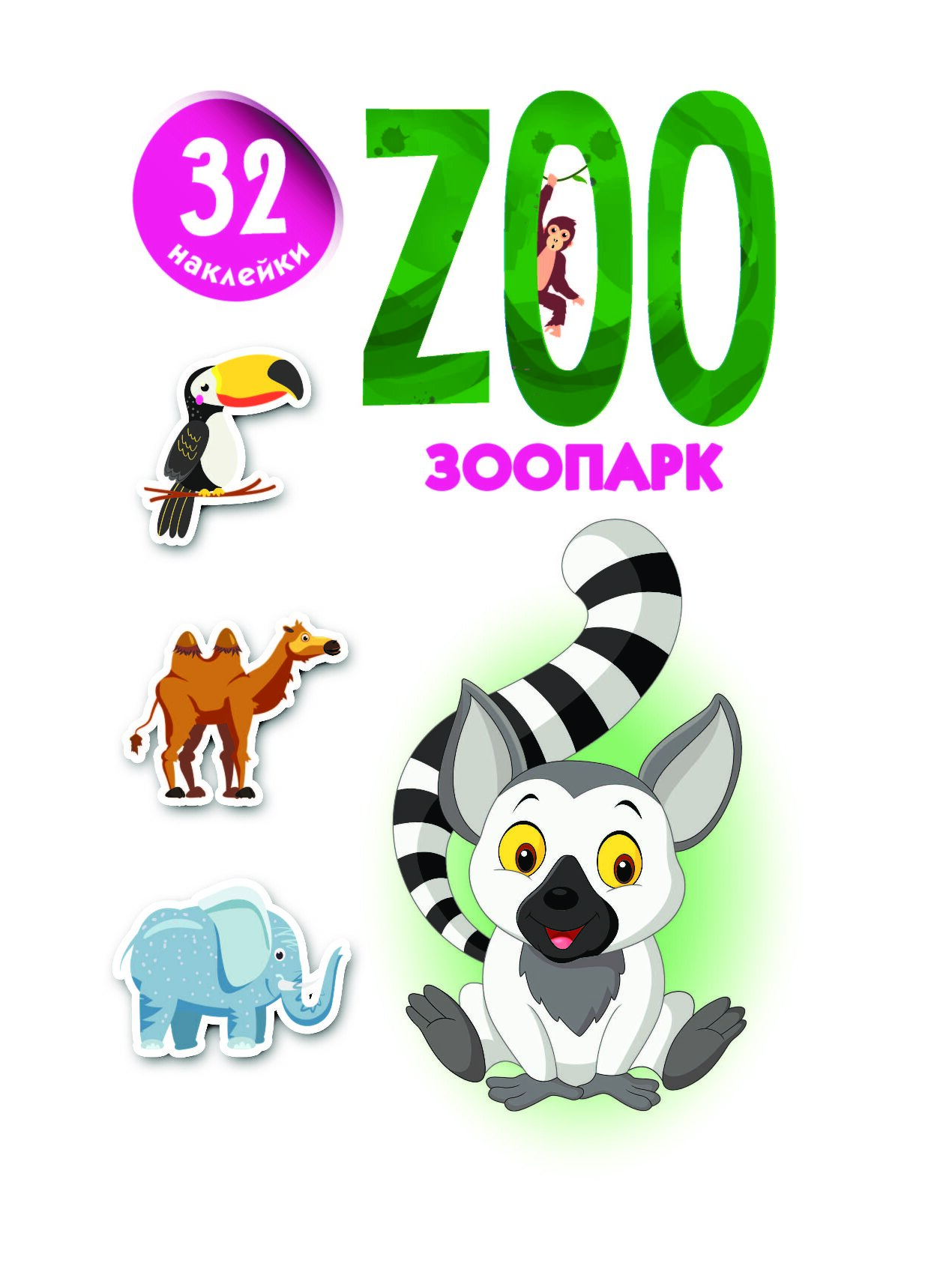 Красочная книга с наклейками познакомит малыша с разными животными, которые живут в зоопарке.