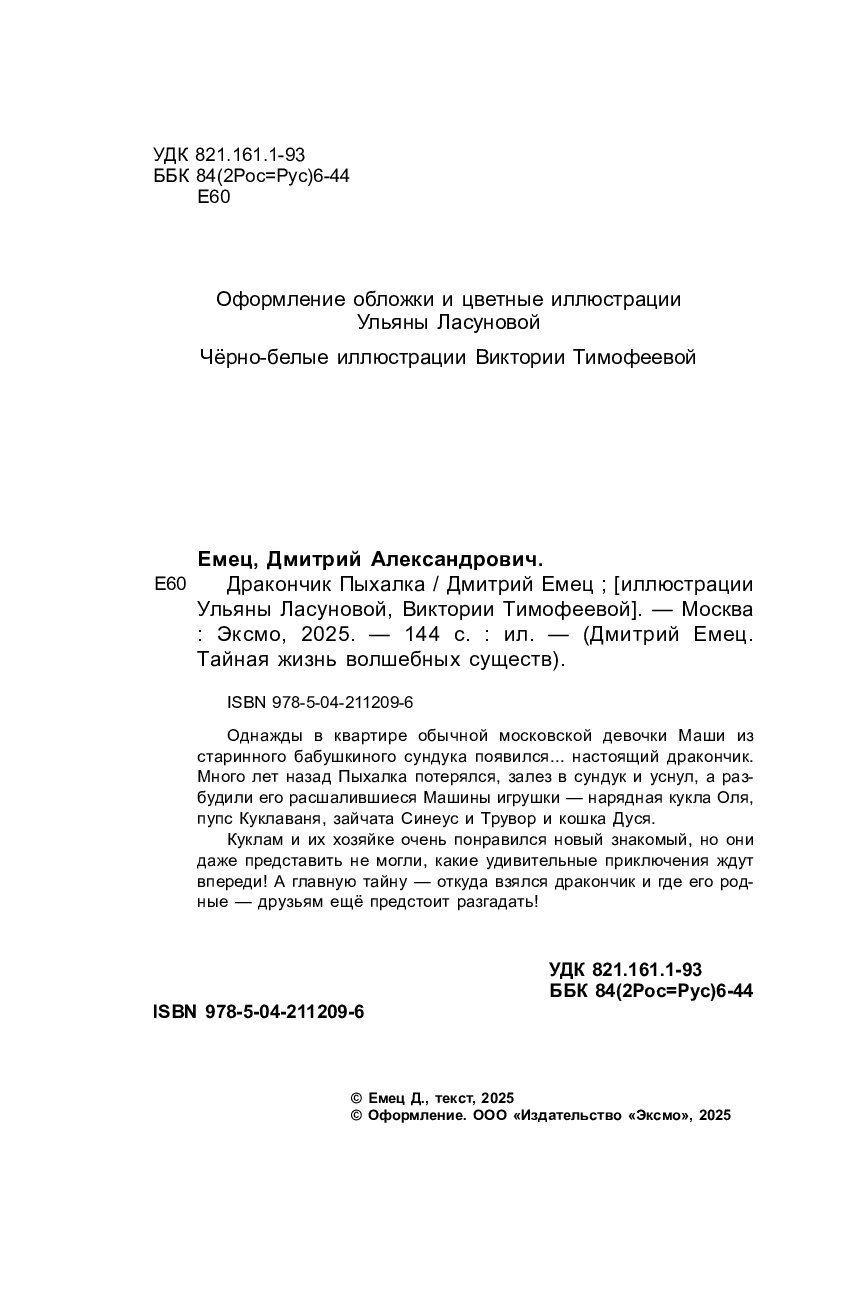 Автор «Дракончика Пыхалки» — знаменитый российский писатель Дмитрий Емец, известный не только книгами о «Тане Гроттер», но и историями для детей помладше, такими как «Дракончик Пыхалка», «Приключения домовят» и «Бунт пупсиков»! Общий тираж книг автора уже более 7 миллионов экземпляров!