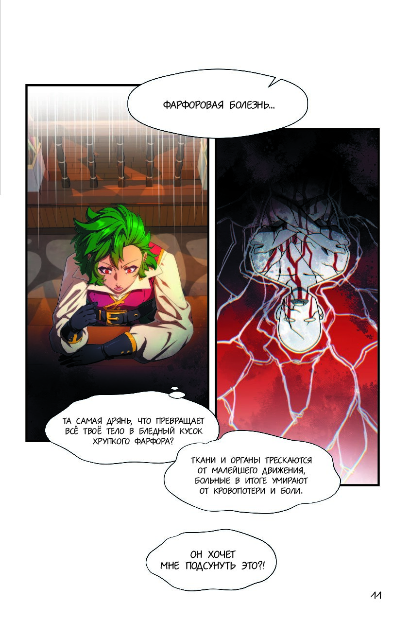 Нора, известный на все королевство алхимик, приезжает в город Бринас торговать зельями. И оказывается в центре загадочной эпидемия фарфоровой болезни — жуткого неизлечимого недуга, при котором тело превращается в хрупкий фарфор. Вот только симптомы у местных больных не совсем обычные и, как утверждает мэр, есть случаи полного выздоровления…