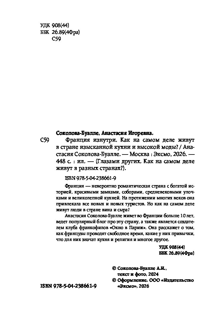 Книга «Франция изнутри» посвящена всем, кто влюблен в страну шарма и легкости и хочет узнать все о быте и нраве французов. Анастасия Соколова-Буалле, гид и историк из Парижа, станет для вас личным проводником и поможет разобраться во всех тонкостях французской культуры.