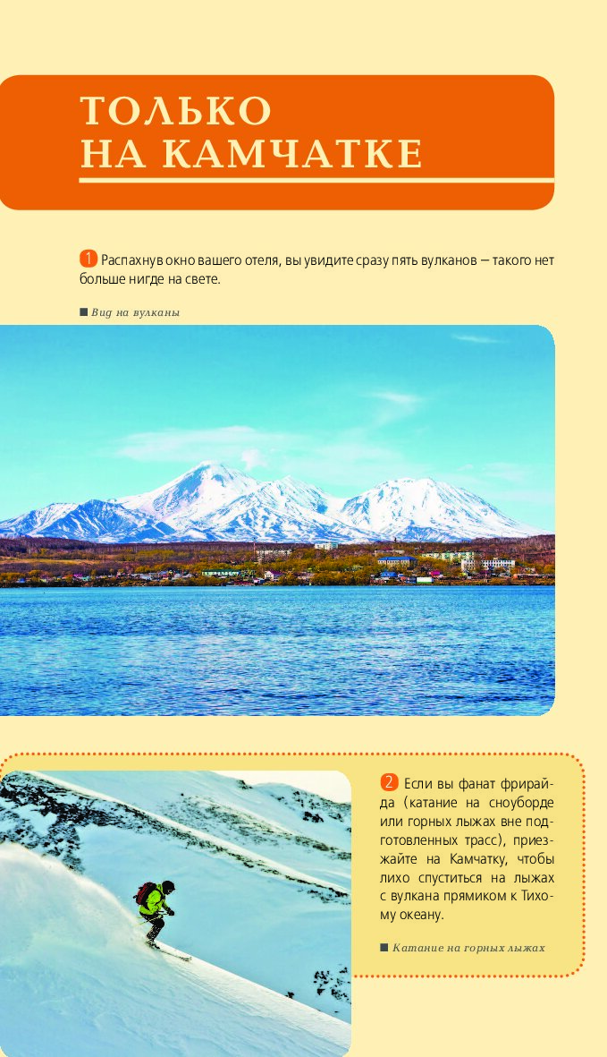 Впервые путеводитель «Оранжевый гид» по Камчатке! Внутри еще больше красочных фотографий, полезных советов от автора, куда пойти и как провести время на Камчатке. Календарь событий, практическая информация, все об активном отдыхе, а также новинка 2021 года — чек-лист с основными достопримечательностями полуострова!