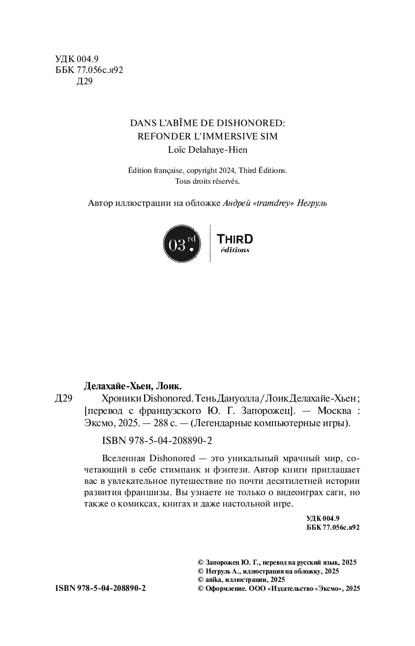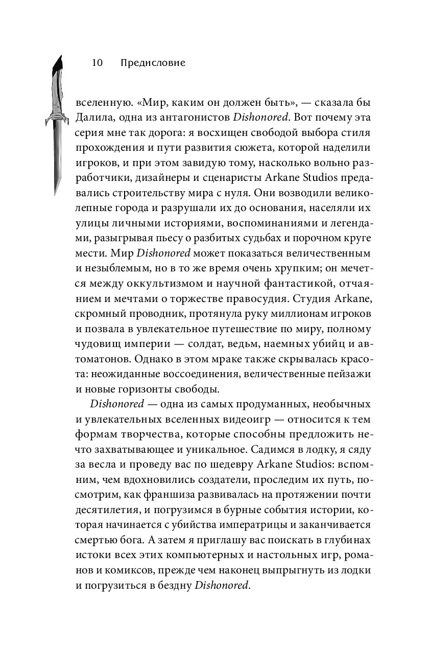 Вселенная Dishonored — это уникальный мрачный мир, сочетающий в себе стимпанк и фэнтези. Автор книги приглашает вас в увлекательное путешествие по почти десятилетней истории развития франшизы. Вы узнаете не только о видеоиграх саги, но также о комиксах, книгах и даже настольной игре.