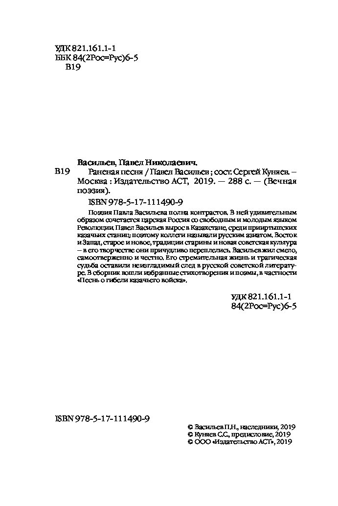 Книга «Раненая песня» Васильев П.Н.