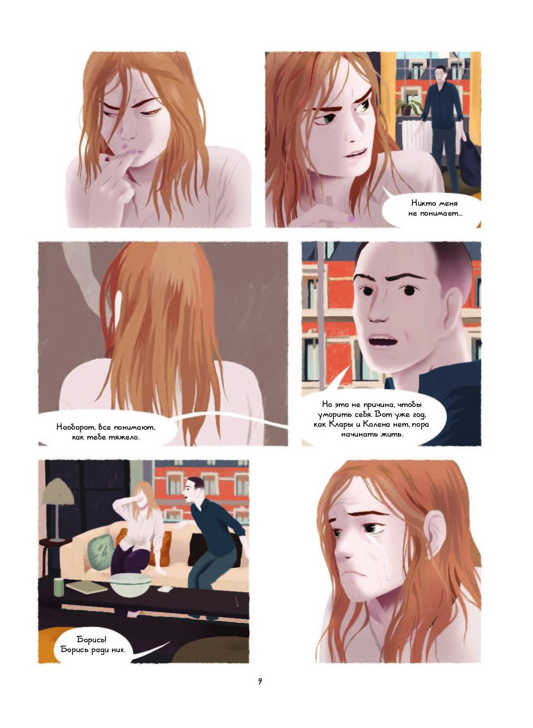 Роман Аньес Мартен-Люган “Счастливые люди читают книжки и пьют кофе” вышел в 2013 году и принес своей создательнице мировую известность. Миллионные тиражи, перевод на десятки языков мира и преданная армия поклонников – все это благодаря, в первую очередь, очень точно и искренне рассказанной истории. Мартен-Люган не приукрашает ни своих героев, ни саму жизнь, от этого этот рассказ о смерти и зарождении любви воспринимается настолько правдиво, что большинство читателей были уверены в автобиографичности книги. Графическое воплощение романа сумело сохранить и эту уникальную исповедальную интонацию, и захватывающую сюжетную линию, и глубокий психологизм героев, которые стали, кажется, еще объемнее и реалистичнее благодаря яркой, выразительной работе художницы Сесиль Бидо.